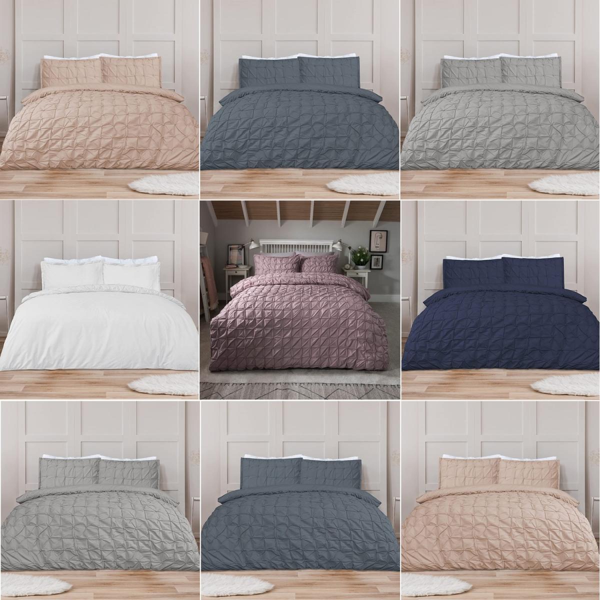 Sleepdown Geometric Rouched Pleat Pintuck Geo Ruched Duvet Set Quilt Cover Pillowcase Bedding. Give your bedroom a fresh modern look with this Rouched Pleats Duvet Cover Set. Polycotton fabric material has the best of both worlds the natural breathability and beauty of cotton and the durability and longevity of polyester. Additional features and benefits of Poly Cotton, Wrinkle Resistant, Strong, Durable, Breathable, Shrink Resistant, Retain Colour, Fade Resistant and can be washed more often