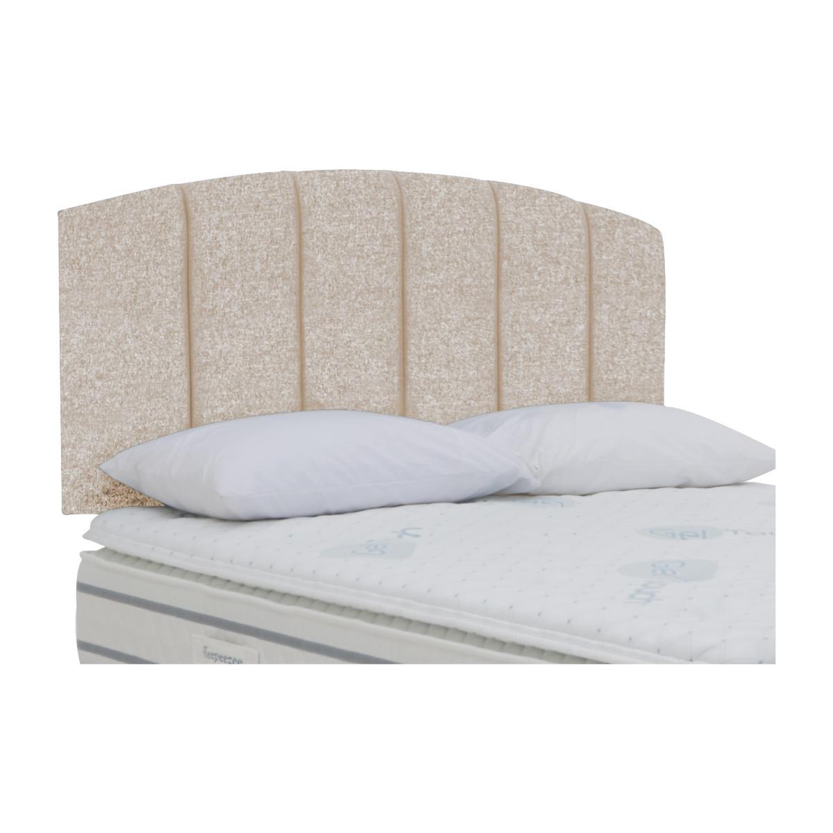 Classic arched headboard with elegant fluting detail. Generously cushioned and offered in a huge choice of fabrics. Handcrafted in Britain and exclusive to Furniture Village. Wonderfully curved and elegantly detailed, the Sleepeezee Banff strutted headboard perfectly combines classic style with contemporary designer flair. The top of this generously cushioned headboard features a smooth arched silhouette, visually pleasing and destined to perfectly harmonise with so many bedroom decor styles. Neatly upholstered, it’s embellished with deep vertical fluting, beautifully executed and so on trend. Available in a range of standard bed sizes, the Sleepeezee Banff strutted headboard comes in a wide choice of high-quality fabrics in an extensive range of fabulous colours. It’s designed to partner the divan bases in the Sleepeezee Gel Touch collection which are available with optional drawer and space-saving side lift ottoman storage. A floor standing version of this headboard is also available. The Sleepeezee Banff strutted headboard is handcrafted in Britain by Sleepeezee exclusively for Furniture Village.