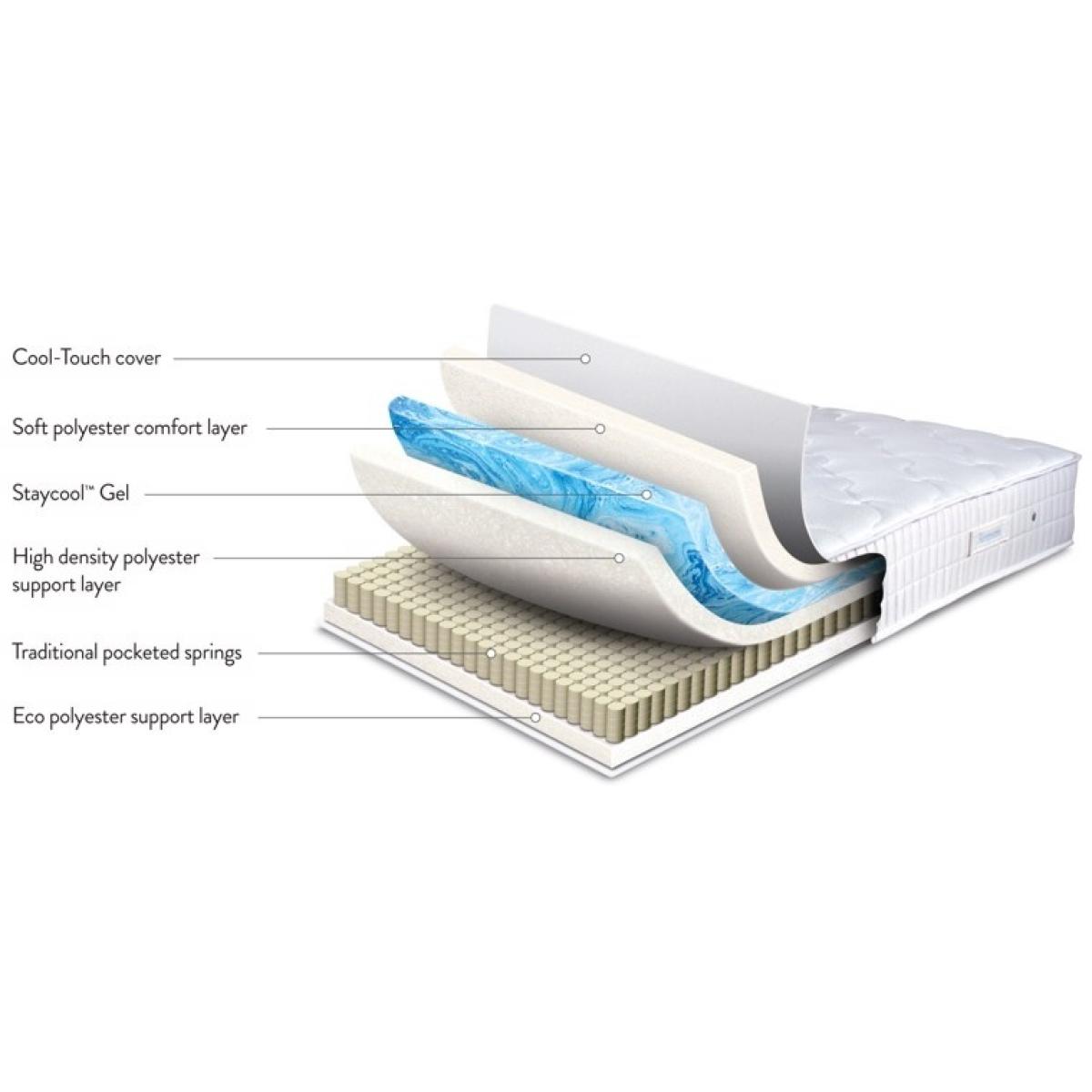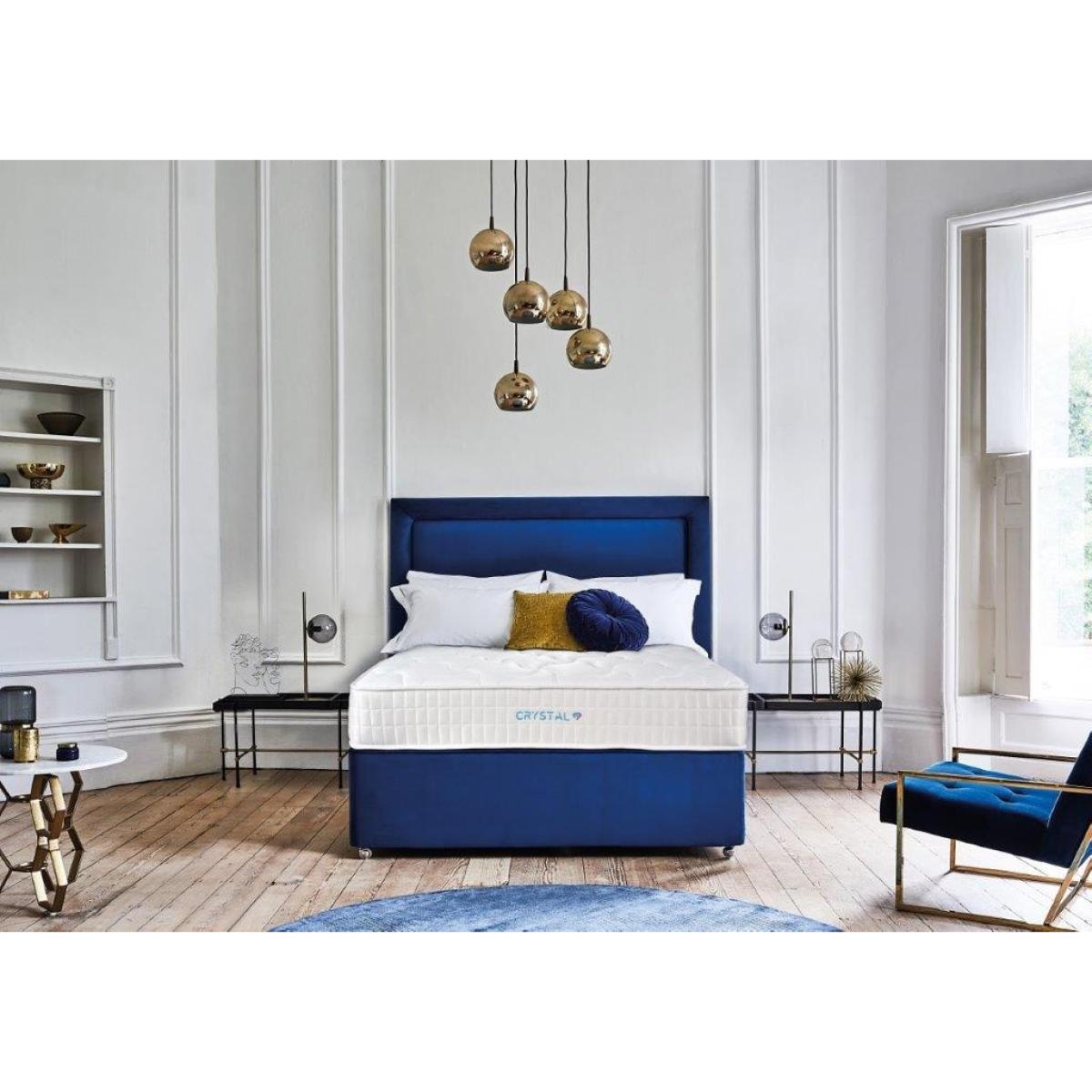 Note - The headboard pictured is not included but is available to purchase separately. The base or frame pictured in the image may not be representative of the specific base you require. Please contact us for more information, if needed. The Crystal Firm features a unique mattress sleeping surface which gives a cool to the touch feel and is designed to keep you cooler during the night for an undisturbed nights sleep. The Crystal Firm mattress has 950 unique barrel shaped pocket springs for optimum support and posture. This easy care mattress does not require turning, just rotating from head to foot every month to ensure longevity and continued comfort. Cool-Touch Cover - Cool-Touch sleep surface designed and proven to reduce your body temperature, keeping you cooler during the summer. Staycool Gel - Supportive and breathable gel that channels away excess body heat for superior sleep. This set comes with a 10 year guarantee. Dimensions: Platform Top Base Height: 30.5cm/12 inches Ottoman Base Height: 35.6cm/14 inches All screens vary in colour reproduction and whilst every effort has been made to display the colour as accurately as possible it is for guidance only.