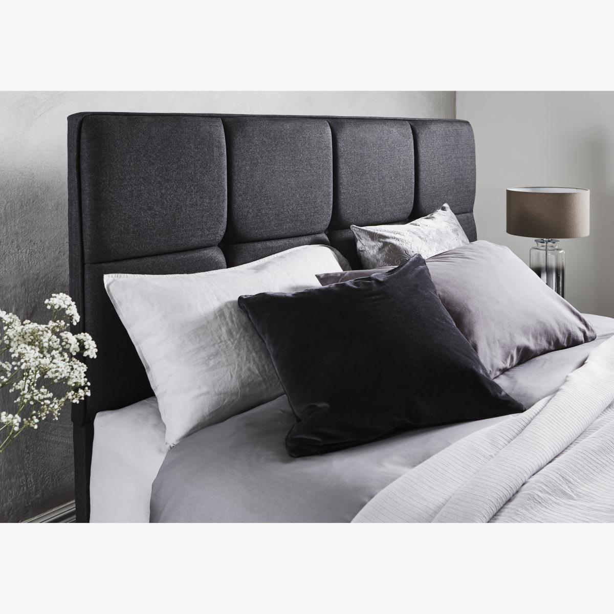 Turn a comfortable bed into a stylish one with this contemporary headboard. Comfortably cushioned and upholstered in a wide choice of colours, the simple geometric style suits most bedrooms. Why you’ll love it● Luxuriously padded headboard with a bold geometric look. ● Clean-lined contemporary style. ● Fully upholstered from top to bottom for a more finished look. ● Two rows of understated buttoning. ● In a huge choice of fabrics and colours. ● Available in single, double, king and super king bed sizes. ● Sleepeezee holds a Royal Warrant of Appointment granted by HRH The Prince of Wales. ● Handcrafted in Britain and exclusive to Furniture Village. What you need to know● Affixes easily to any traditional-style divan base. ● Headboard bolts are provided. ● Designed to match the divan sets in the Sleepeezee Memory Touch 2800 range.