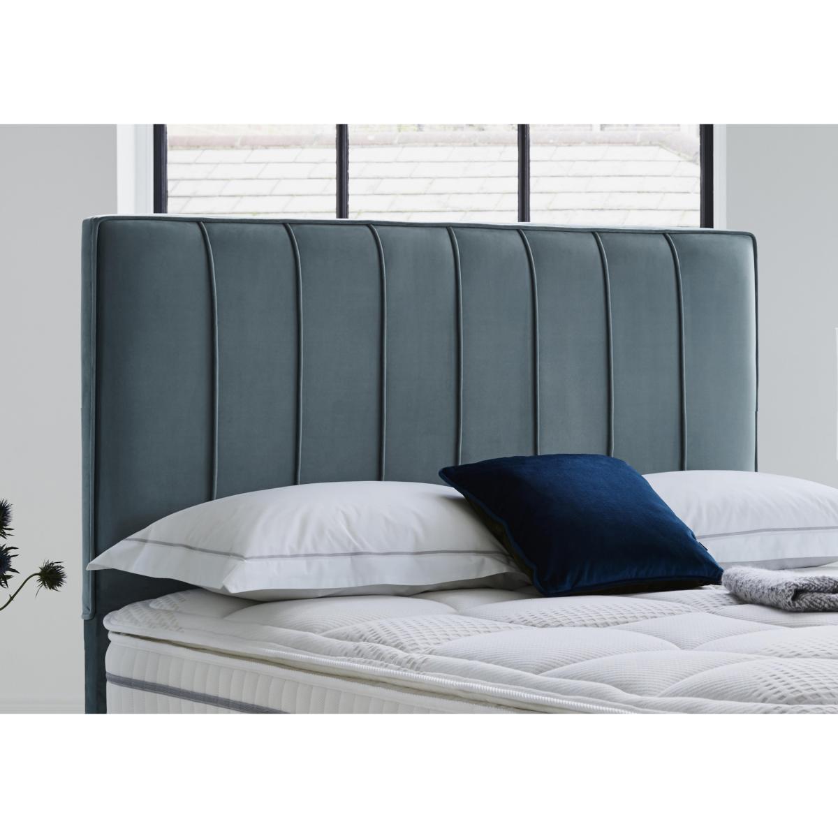 • Contemporary floor standing headboard with vertical piping detail • Available in a huge range of fabrics • Handcrafted in Britain by Sleepeezee and exclusive to Furniture VillageAdd a touch of contemporary elegance to your bed with the impeccably stylish Sleepeezee Daniel floor standing headboard. Fully upholstered from top to bottom, this handcrafted headboard is comfortably padded and features bold vertical piping that emphasises the generous cushioning and conveys an air of modern designer style. This lovely headboard is available in a huge range of upholstery fabric styles and colours. Made in Britain, the Sleepeezee Daniel floor standing headboard is designed to pair beautifully with the divan sets in the Sleepeezee Tranquility collection, but can also be used with any standard size divan base. Exceptionally well-priced and only available at Furniture Village.