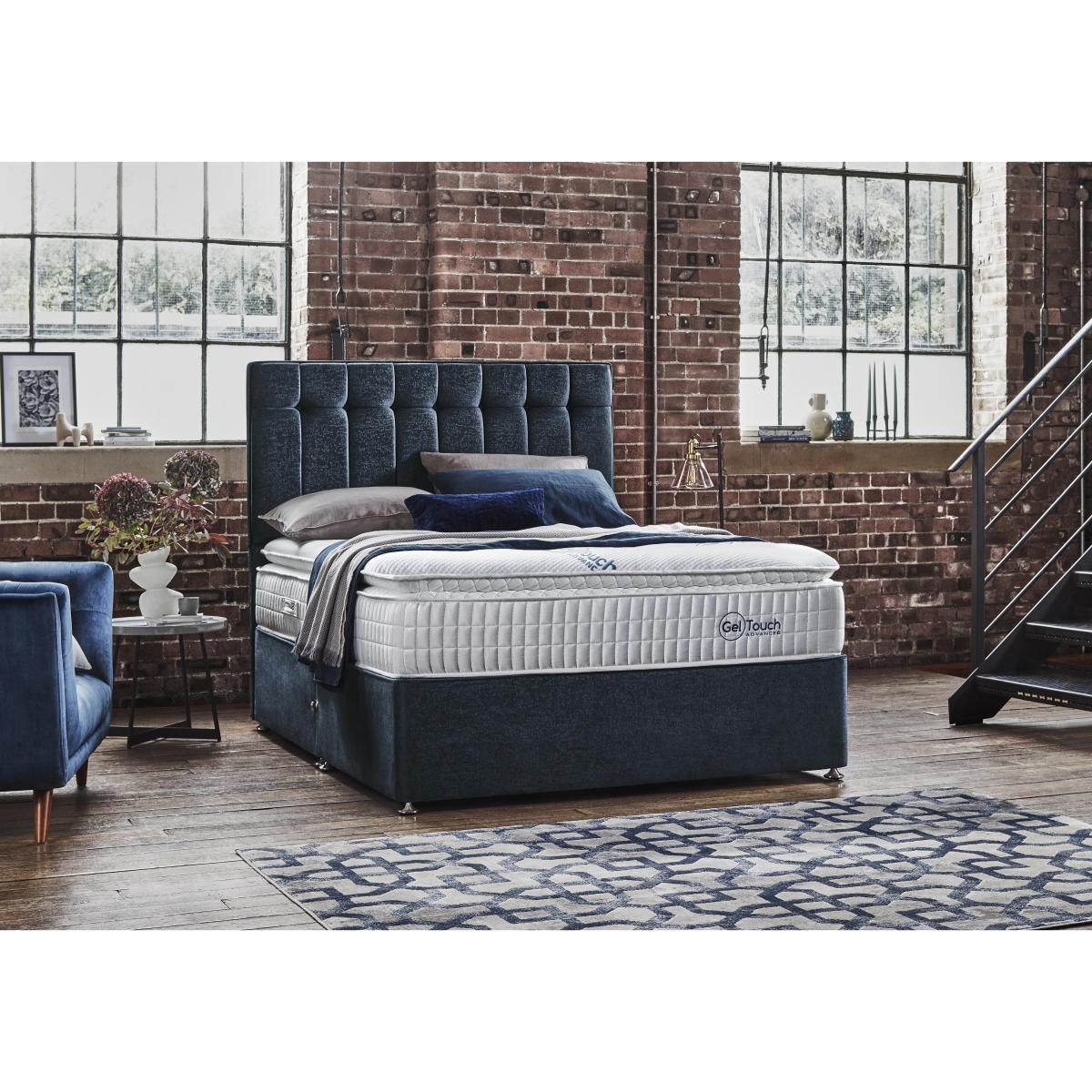 Pocket sprung support meets advanced cooling technology in the handcrafted Sleepeezee Geltouch Advanced 7500 collection, a range that’s ideal for anyone who tends to overheat at night. Mattresses feature Temperature. Smart™ cooling strips that disperse heat and then help you maintain your optimal sleep temperature while body-conforming StayCool™ gel further helps regulate body temperature. Mattresses combine traditional pocket spring support – there are 7,500 in king size – with wonderfully cushioning memory foam and are fully encapsulated to ensure the widest possible sleep surface. The range also includes beautiful upholstered divan bases available with optional storage drawers and ottoman storage. The Sleepeezee Geltouch Advanced 7500 range is exclusive to Furniture Village. This handcrafted divan set is built for both practicality – you can add storage drawers – and superior comfort. The pocket spring mattress has clever cooling technology. Why you'll love it Stylish divan set with ultra-comfortable cooling mattress and built-in storage drawers. Superb pocket sprung mattress promises better sleep 5 ways. 7,500 pocket springs in king size ensure superior support. TemperatureSmart™ cooling strips disperse heat and help you maintain a consistent temperature. Layers of ultra-comfortable pressure-sensitive StayCool™ gel help regulate body temperature. Slow-release memory foam gives you that wonderfully relaxing floating feeling. Fully encapsulated construction means edge to edge support and a larger sleep surface. Choose from a fantastic choice of colours for the upholstered divan base. With optional storage drawers. Also available as end-lift and side-lift ottoman divan sets. Handmade in England and exclusive to Furniture Village. This divan set is part of the Sleepeezee Geltouch Advanced 7500 range. What you need to know Headboard shown is the Sleepeezee Beam headboard, available separately. Mattress type: Pocket spring. Depth: 34 cm. Firmness: Medium. Springs: 7,500 in king size. Pillow top: No. Fillings: Memory foam, polyester. Cover: Knitted, woven. Requires turning: No. Base type: Platform-top with optional storage. Sizes: Single, small double, double, king, super king. Mattress care:Air for 4 hours before using to remove any odour. Allow at least 4 hours for springs to settle and for mattress to attain its full size. Indentations caused by settlement of fillings or body weight are normal and are not considered defects. If used on a slatted bed frame, the space between slats must be no wider than 7.5 cm. Spaces wider than this may cause excess dipping of the mattress and invalidate the guarantee. Always use a mattress protector. Rotate regularly. Divan base care: Clean upholstery weekly using a soft brush or vacuum with the curtain attachment. Professional cleaning advised for oil- and grease-based stains. Some fabrics can show wear on areas of more use or in direct sunlight.