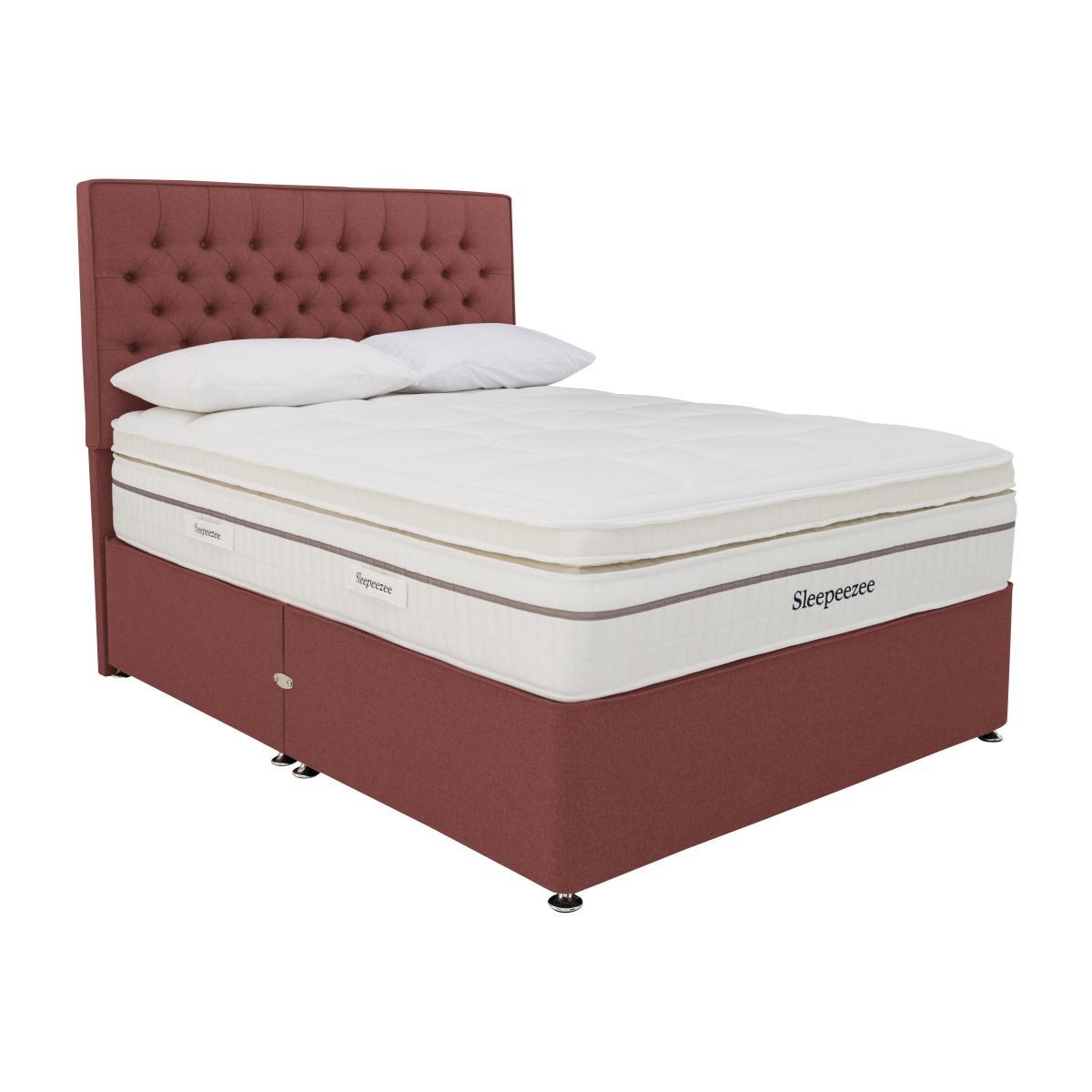 Luxurious mattress comfort meets traditional well-crafted divan style in the Sleepeezee Harmony 3500 collection. The superb medium-feel hypoallergenic mattress, complete with sumptuous pillow top, features three layers of memory foam and three tiers of individually-responsive pocket springs, a combination that’s precisely engineered for the optimum in comfort and support. Divan bases are beautifully upholstered in a choice of plush-feel, tweed and woven fabrics and come with optional storage drawers or an ottoman base. Handcrafted in the UK by Sleepeezee exclusively for Furniture Village. Superior pillow top, memory foam and pocket spring mattress. Beautifully upholstered divan base with optional storage. Handcrafted in the UK for Furniture Village. Superb layered mattress comfort, classic divan base style, optional storage drawers – there’s so much to love about the Sleepeezee Harmony 3500 divan set. Featuring a fabulous and innovatively-designed mattress with three tiers of individually-pocketed springs – a full 3500 in king size – and three layers of body-confirming memory foam, this deep 35 cm hypoallergenic mattress is topped with a soft and sumptuous pillow top. The overall comfort feel is medium, and you’ll appreciate the precisely-engineered combination of cushioning comfort and responsive support. It rests on a classic platform top-style divan base that’s beautifully upholstered. Choose from a huge range of fabric colours that include subtle neutrals as well as sophisticated modern hues, and then add optional drawer or ottoman storage. Handcrafted in the UK exclusively for Furniture Village, the Sleepeezee Harmony 3500 divan set is part of the Sleepeezee Harmony 3500 collection which also includes a standalone mattress. Sleepeezee holds a Royal Warrant of Appointment granted by HRH The Prince of Wales. Product images are representative. Find out more. Did you know?. The mattress should be aired for four hours after delivery to freshen and remove any aroma from storage. It may take time for your mattress to attain its full size once the springs have settled to the correct position. This is due to the mattress being upright during transit. Settlement of fillings and indentations caused by body weight compressing the fillings are natural and not considered defects. This can be minimised by regular rotating.