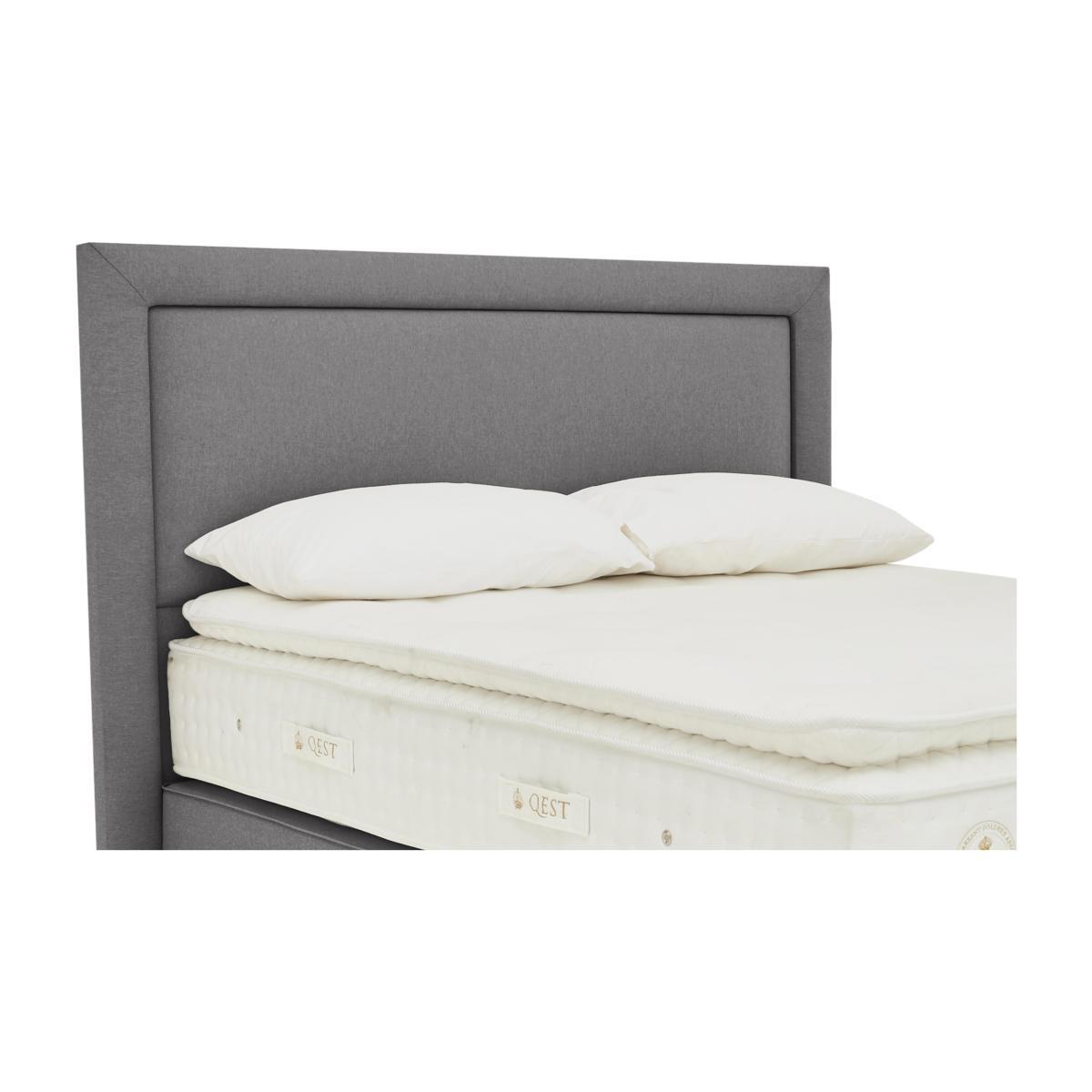 Contemporary, cushioned Sleepeezee headboard, handcrafted in the UK. Fluting frames the cushioned panels for a chic, understated look. Upholstered in a woven Belgian damask. Fabric coordinates with Sleepeezee QEST Legacy divans. Fully upholstered from top to floor for a truly luxurious feel.