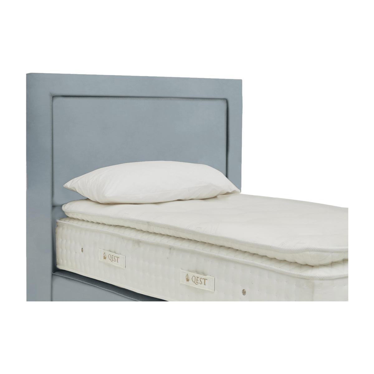 Contemporary, cushioned Sleepeezee headboard, handcrafted in the UK. Fluting frames the cushioned panels for a chic, understated look. Upholstered in a woven Belgian damask. Fabric coordinates with Sleepeezee QEST Legacy divans. Fully upholstered from top to floor for a truly luxurious feel.