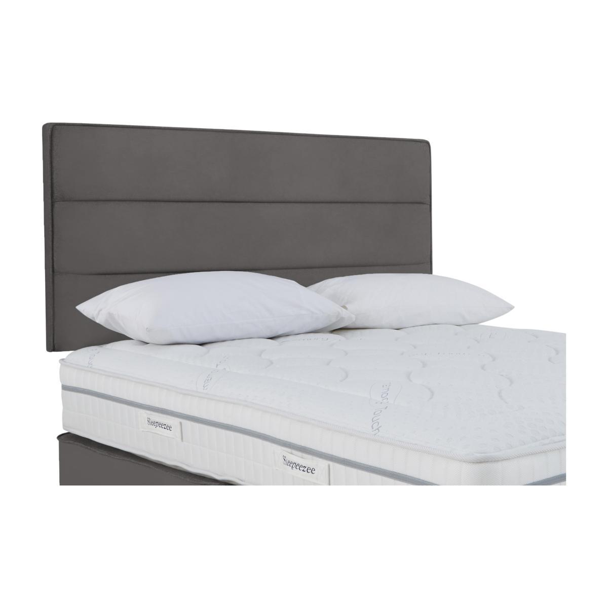 Look forward to more restful sleep with the handcrafted Sleepeezee Calm 2200 collection. The medium-feel 30 cm mattress with luxurious pillow top, 2200 individually-pocketed springs in king size and hypoallergenic white fibre and memory foam fillings provides the perfect combination of softness and support. Beautifully upholstered platform-top divan bases are available in a wide choice of fabrics and offer optional drawer storage in a range of useful configurations. Yours at a great value price, the Sleepeezee Calm 2200 collection is made in Britain by Sleepeezee, holders of a Royal Warrant from HRH The Prince of Wales. A Furniture Village exclusive. Cool and contemporary in style, the Sleepeezee Jack strutted headboard is beautifully handcrafted in Britain. Generously padded for comfort it features modern horizontal fluting, a bold yet simple design motif that’s sure to suit any bedroom décor. It’s available in a wide range of upholstery fabric styles and colours. And while it’s intended to partner with the divan bases in the Sleepeezee Calm collection, it also affixes easily to any standard divan bed using the hardware provided. Yours at a very appealing price, the Sleepeezee Jack strutted headboard is a Furniture Village exclusive.