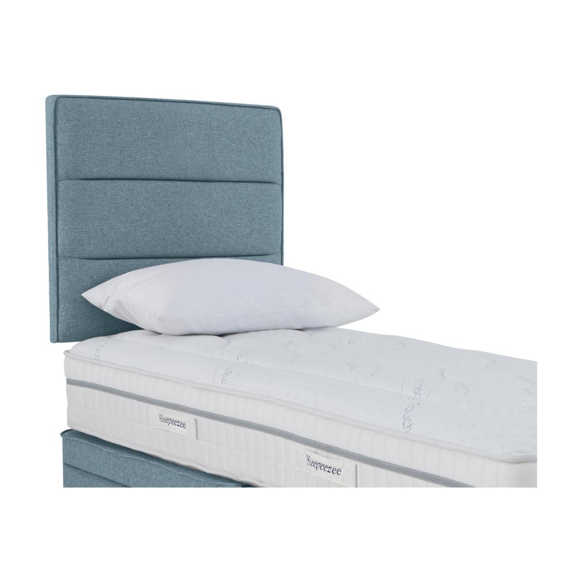 Look forward to more restful sleep with the handcrafted Sleepeezee Calm 2200 collection. The medium-feel 30 cm mattress with luxurious pillow top, 2200 individually-pocketed springs in king size and hypoallergenic white fibre and memory foam fillings provides the perfect combination of softness and support. Beautifully upholstered platform-top divan bases are available in a wide choice of fabrics and offer optional drawer storage in a range of useful configurations. Yours at a great value price, the Sleepeezee Calm 2200 collection is made in Britain by Sleepeezee, holders of a Royal Warrant from HRH The Prince of Wales. A Furniture Village exclusive. Cool and contemporary in style, the Sleepeezee Jack strutted headboard is beautifully handcrafted in Britain. Generously padded for comfort it features modern horizontal fluting, a bold yet simple design motif that’s sure to suit any bedroom décor. It’s available in a wide range of upholstery fabric styles and colours. And while it’s intended to partner with the divan bases in the Sleepeezee Calm collection, it also affixes easily to any standard divan bed using the hardware provided. Yours at a very appealing price, the Sleepeezee Jack strutted headboard is a Furniture Village exclusive.