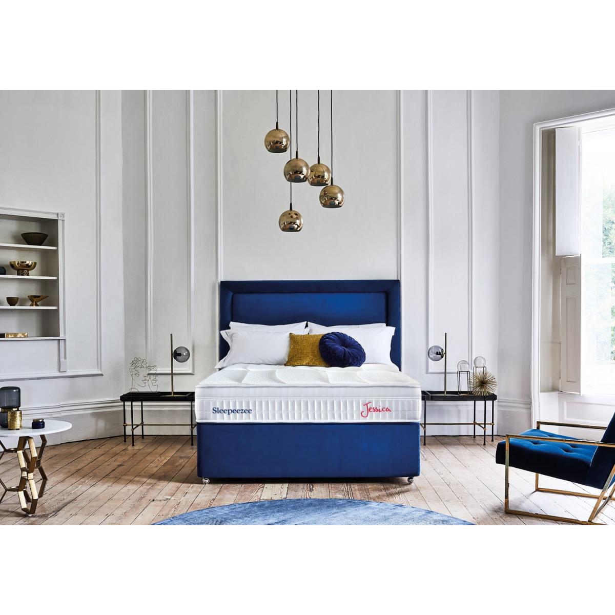 Note - The headboard pictured is not included but is available to purchase separately. The base or frame pictured in the image may not be representative of the specific base you require. Please contact us for more information, if needed. Introducing the Jessica, a Which?-approved encapsulated mattress with edge-to-edge support, complete with Staycool Gel that helps to regulate body temperature, and with the perfect blend of technologies, you're guaranteed to sleep soundly all night long. The Jessica range, named for Dame Jessica Ennis-Hill, is perfect for those with an active lifestyle. It combines the best of our sleep technology with Hypoallergenic & Staycool Gel. Sleep like a champion to get the most out of every day with the Jessica mattress. Staycool Gel - Provides pressure sensitive support that immediately responds to your body shape and helps regulate body temperature. Medium Support - Medium support mattresses are ideal for those who love to sink into their mattress but still require support. Perfect for side sleepers. Hypoallergenic - Contains white fibre filling to cushion spring movement and reduce allergens. Non Turn - Easy care non-turn mattress that saves time and effort. Staycool Gel - The Staycool Gel allows air and moisture to pass through the surface, helping to remove heat from the body to prevent overheating and resulting in a more comfortable night's sleep. 10 Year Guarantee - Here at Sleepeezee we are confident all of our beds are made to the highest standards. Therefore we offer a ten-year guarantee on our Jessica mattress. Made in the UK - Each mattress is handmade by our expert team at our factory in Kent and then shipped directly to retailers across the UK. Dimensions: Platform Top Base Height: 30.5cm/12 inches Ottoman Base Height: 35.6cm/14 inches Mattress Dimensions: Single - W 90cm x L 190cm x D 29cm Double - W 135cm x L 190cm x D 29cm King - W 150cm x L 200cm x D 29cm Super King - W 180cm x L 200cm x D 29cm An ingenious mechanism, using gas rams, assists with opening the ottoman when accessing your stored items. As a rule of thumb, a king size ottoman divan base has 6 times more space than a 2 drawer divan! Base provides a supportive feel to the mattress. Built by expert craftspeople in the UK. All screens vary in colour reproduction and whilst every effort has been made to display the colour as accurately as possible it is for guidance only.