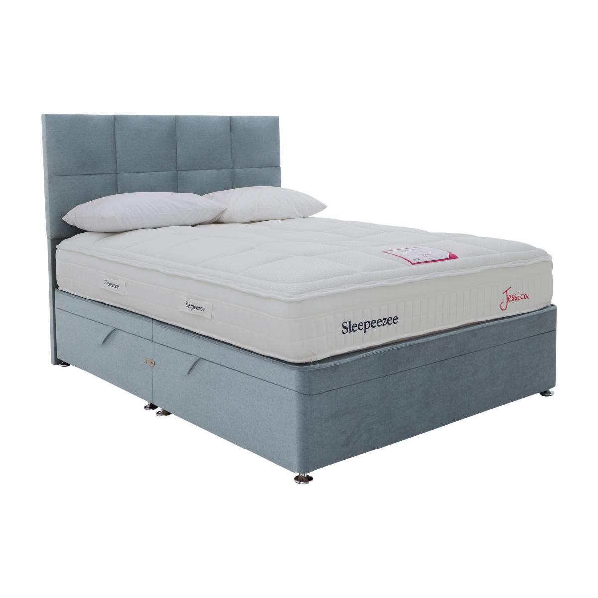 The Sleepeezee Jessica range was designed in partnership with elite athlete and Sleepeezee Ambassador Jessica Ennis-Hill. And now its cooling, supportive, luxurious and hypoallergenic medium to firm feel mattress has won a Which? Best Buy award. Enjoy the comfort of edge-to-edge support, temperature regulating StayCool® foam, memory foam, traditional springs and body-contouring SoftTech® springs. Choose from beautiful side ottoman and drawer divan bases covered in a choice of attractive fabrics and colours. A donation to Ennis-Hill’s Hospital charity is made with every mattress sold. Medium to firm comfort with temperature regulating StayCool® foam. 1800 pocket springs in king size, including innovative SoftTech® springs. Side ottoman divan base in a choice of gorgeous fabrics. Headboard is an optional extra. Proudly handcrafted here in the UK and designed in partnership with Sleepeezee Brand Ambassador Jessica Ennis-Hill, the Sleepeezee Jessica side ottoman divan set has lots to recommend it. There’s plenty of useful storage in the easy open side-ottoman base, luxuriously upholstered in a choice of lovely fabrics and colours. Then there’s supportive, pampering, medium to firm feel comfort of the Which? Best Buy mattress – designed to give you a cooling, comfy, hypoallergenic night’s sleep on responsive pocket springs. The 25cm deep mattress has a soft knitted, quilted cover with damask border. Working from the base upwards you’ll find traditional pocket springs, a further layer of responsive SoftTech® springs for posture-friendly support, a deep layer of StayCool® foam and finally memory foam topped with soft, hypoallergenic white fibres. The single sided, no turn mattress is fully encapsulated with a firm edge so there’s no roll-together. The side ottoman divan base is made from high quality timber and materials and robustly constructed. It’s available in all the standard bed sizes. Product images are representative. Find out more. The mattress is a non-turn mattress. We recommend the use of a mattress protector. Please note. The mattress should be aired for four hours after delivery to freshen and remove any aroma from storage. It may take time for your mattress to attain its full size once the springs have settled to the correct position. This is due to the mattress being upright during transit. Settlement of fillings and indentations caused by body weight compressing the fillings are natural and not considered defects. This can be minimised by regular rotating.