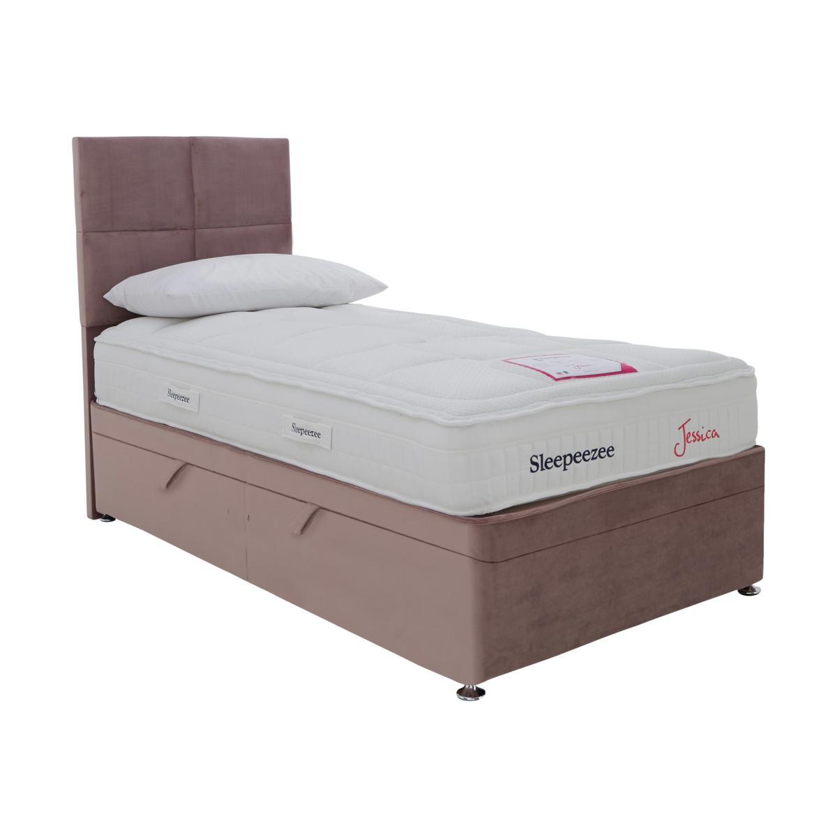 The Sleepeezee Jessica range was designed in partnership with elite athlete and Sleepeezee Ambassador Jessica Ennis-Hill. And now its cooling, supportive, luxurious and hypoallergenic medium to firm feel mattress has won a Which? Best Buy award. Enjoy the comfort of edge-to-edge support, temperature regulating StayCool® foam, memory foam, traditional springs and body-contouring SoftTech® springs. Choose from beautiful side ottoman and drawer divan bases covered in a choice of attractive fabrics and colours. A donation to Ennis-Hill’s Hospital charity is made with every mattress sold. Medium to firm comfort with temperature regulating StayCool® foam. 1800 pocket springs in king size, including innovative SoftTech® springs. Side ottoman divan base in a choice of gorgeous fabrics. Headboard is an optional extra. Proudly handcrafted here in the UK and designed in partnership with Sleepeezee Brand Ambassador Jessica Ennis-Hill, the Sleepeezee Jessica side ottoman divan set has lots to recommend it. There’s plenty of useful storage in the easy open side-ottoman base, luxuriously upholstered in a choice of lovely fabrics and colours. Then there’s supportive, pampering, medium to firm feel comfort of the Which? Best Buy mattress – designed to give you a cooling, comfy, hypoallergenic night’s sleep on responsive pocket springs. The 25cm deep mattress has a soft knitted, quilted cover with damask border. Working from the base upwards you’ll find traditional pocket springs, a further layer of responsive SoftTech® springs for posture-friendly support, a deep layer of StayCool® foam and finally memory foam topped with soft, hypoallergenic white fibres. The single sided, no turn mattress is fully encapsulated with a firm edge so there’s no roll-together. The side ottoman divan base is made from high quality timber and materials and robustly constructed. It’s available in all the standard bed sizes. Product images are representative. Find out more. The mattress is a non-turn mattress. We recommend the use of a mattress protector. Please note. The mattress should be aired for four hours after delivery to freshen and remove any aroma from storage. It may take time for your mattress to attain its full size once the springs have settled to the correct position. This is due to the mattress being upright during transit. Settlement of fillings and indentations caused by body weight compressing the fillings are natural and not considered defects. This can be minimised by regular rotating.