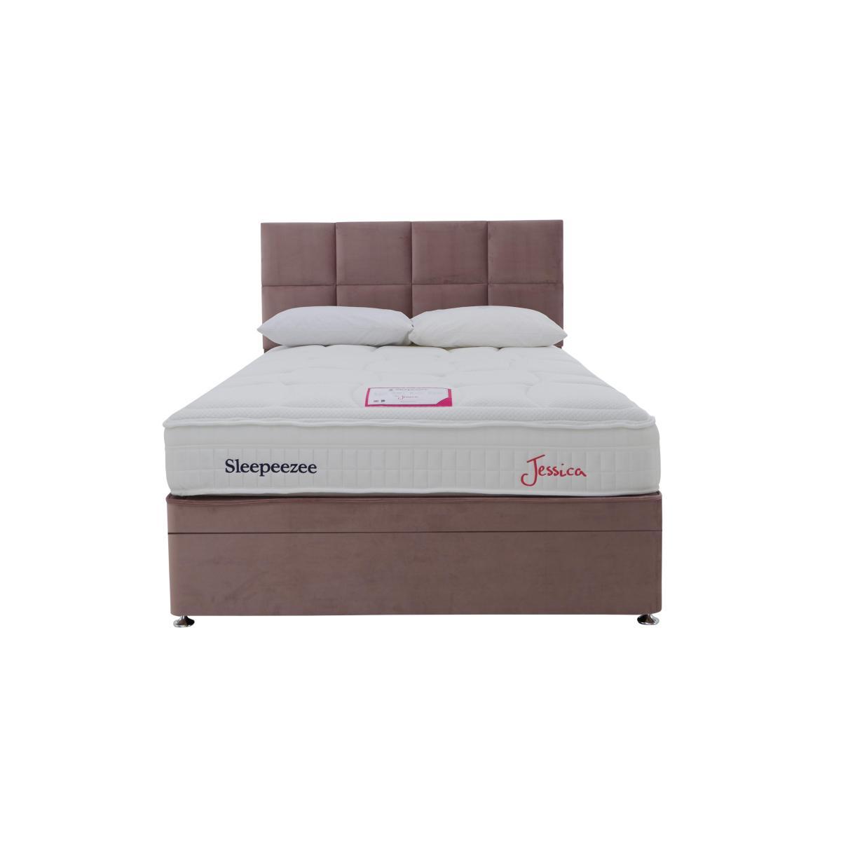 The Sleepeezee Jessica range was designed in partnership with elite athlete and Sleepeezee Ambassador Jessica Ennis-Hill. And now its cooling, supportive, luxurious and hypoallergenic medium to firm feel mattress has won a Which? Best Buy award. Enjoy the comfort of edge-to-edge support, temperature regulating StayCool® foam, memory foam, traditional springs and body-contouring SoftTech® springs. Choose from beautiful side ottoman and drawer divan bases covered in a choice of attractive fabrics and colours. A donation to Ennis-Hill’s Hospital charity is made with every mattress sold. Medium to firm comfort with temperature regulating StayCool® foam. 1800 pocket springs in king size, including innovative SoftTech® springs. Side ottoman divan base in a choice of gorgeous fabrics. Headboard is an optional extra. Proudly handcrafted here in the UK and designed in partnership with Sleepeezee Brand Ambassador Jessica Ennis-Hill, the Sleepeezee Jessica side ottoman divan set has lots to recommend it. There’s plenty of useful storage in the easy open side-ottoman base, luxuriously upholstered in a choice of lovely fabrics and colours. Then there’s supportive, pampering, medium to firm feel comfort of the Which? Best Buy mattress – designed to give you a cooling, comfy, hypoallergenic night’s sleep on responsive pocket springs. The 25cm deep mattress has a soft knitted, quilted cover with damask border. Working from the base upwards you’ll find traditional pocket springs, a further layer of responsive SoftTech® springs for posture-friendly support, a deep layer of StayCool® foam and finally memory foam topped with soft, hypoallergenic white fibres. The single sided, no turn mattress is fully encapsulated with a firm edge so there’s no roll-together. The side ottoman divan base is made from high quality timber and materials and robustly constructed. It’s available in all the standard bed sizes. Product images are representative. Find out more. The mattress is a non-turn mattress. We recommend the use of a mattress protector. Please note. The mattress should be aired for four hours after delivery to freshen and remove any aroma from storage. It may take time for your mattress to attain its full size once the springs have settled to the correct position. This is due to the mattress being upright during transit. Settlement of fillings and indentations caused by body weight compressing the fillings are natural and not considered defects. This can be minimised by regular rotating.