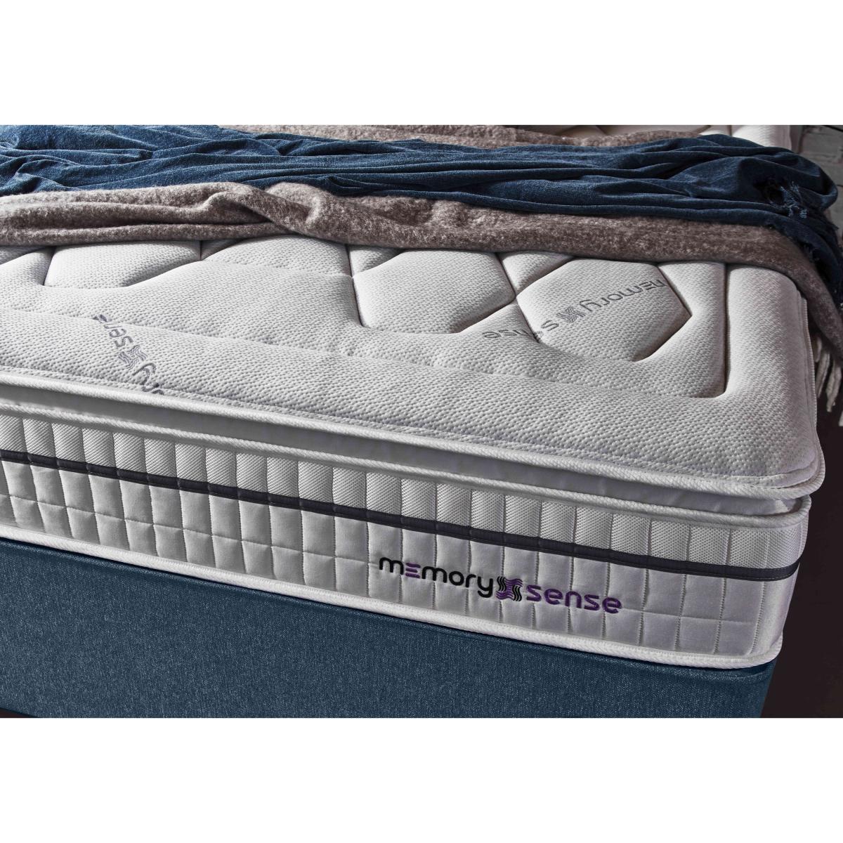 If you sleep better on cushioning, cocooning memory foam but worry about getting too hot at night, a bed or mattress from our Sleepeezee Memory Sense collection is going to be perfect for you. These pocket spring mattresses feature a unique type of ultra-comfortable memory foam infused with graphite that helps disperse body heat. Mattress covers are made with Oxysnse, a material that’s designed to increase your body’s oxygen levels to reduce muscle fatigue, help prevent the risk of sleep apnea and facilitate deeper sleep. Choose a medium or ortho firm feel mattress and pair it with a divan base with optional storage space. The Sleepeezee Memory Sense is exclusive to Furniture Village. Heat-dispersing graphite-infused memory foam, pocket springs and an Oxysense cover ensure you’ll enjoy cooler, more refreshing sleep with this stylish divan set. Why you'll love it Refreshing sleep is yours with this Memory Sense 2300 divan set. Mattress has individually pocketed springs for personalised medium-feel support. Layer of graphite-infused memory foam takes heat away from the body. Moulds to the shape of your body for excellent pressure relief. Helps distribute weight more evenly for better circulation. With an Oxysense cover which increases the body’s oxygen levels. Reduces muscle fatigue, helps prevent the risk of sleep apnea and facilitates deep sleep. Encapsulated edge-to-edge support helps prevent roll off. No turning required. With handles to make rotating easier. Hypoallergenic. Beautiful upholstered base with optional storage drawers. Wide choice of fabrics. Made by hand in the UK and only at Furniture Village. This divan set is part of our Sleepeezee Memory Sense 2300 range. What you need to know Mattress type: Pocket spring. Depth: 29 cm. Weight:Single 26 kg, small double 33 kg, double 38 kg, king 42 kg and super king 50 kg. Firmness: Medium. Springs: 2,300 in king size. Pillow top: No. Fillings: Polyester-encapsulated border, graphite memory foam. Cover: Oxysense fabric. Requires turning: No. Base type: Platform top with optional storage drawers. Sizes:Single, small double, double, king and super king. Mattress care:Air for 4 hours before using to remove any odour. Indentations caused by settlement of fillings or body weight are normal and are not considered defects. If used on a slatted bed frame, the space between slats must be no wider than 7.5 cm. Spaces wider than this may cause excess dipping of the mattress and invalidate the guarantee. Always use a mattress protector. Rotate regularly. Divan base care: Clean upholstery weekly using a soft brush or vacuum with the curtain attachment. Professional cleaning advised for oil- and grease-based stains. Some fabrics can show wear on areas of more use or in direct sunlight.