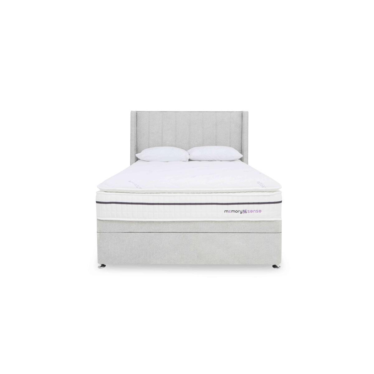 If you sleep better on cushioning, cocooning memory foam but worry about getting too hot at night, a bed or mattress from our Sleepeezee Memory Sense collection is going to be perfect for you. These pocket spring mattresses feature a unique type of ultra-comfortable memory foam infused with graphite that helps disperse body heat. Mattress covers are made with Oxysnse, a material that’s designed to increase your body’s oxygen levels to reduce muscle fatigue, help prevent the risk of sleep apnea and facilitate deeper sleep. Choose a medium or ortho firm feel mattress and pair it with a divan base with optional storage space. The Sleepeezee Memory Sense is exclusive to Furniture Village. This Sleepeezee divan set ticks all the boxes. Beautifully upholstered with optional storage, it comes complete with a superb pocket spring and memory foam mattress with cooling comfort built in. Why you'll love it Revitalising sleep is yours with this Memory Sense 2800 divan set. Mattress has individually pocketed springs for superb, body-responsive medium-feel support. Layer of graphite-infused memory foam takes heat away from the body. Moulds to the shape of your body for excellent pressure relief. Helps distribute weight more evenly for better circulation. With an Oxysense cover which increases the body’s oxygen levels. Reduces muscle fatigue, helps prevent the risk of sleep apnea and facilitates deep sleep. Encapsulated edge-to-edge support helps prevent roll off. No turning required. With handles to make rotating easier. Hypoallergenic. Beautiful upholstered base with optional storage drawers. Wide choice of fabrics. Made by hand in the UK and only at Furniture Village. This divan set is part of our Sleepeezee Memory Sense 2800 range. What you need to know Mattress type: Pocket spring. Depth: 30 cm. Weight:Single 28 kg, small double 35 kg, double 41 kg, king 45 kg and super king 54 kg. Firmness: Medium. Springs: 2,800 in king size. Pillow top: No. Fillings: Polyester-encapsulated border, graphite memory foam. Cover: Oxysense fabric. Requires turning: No. Base type: Platform top with optional storage drawers. Sizes:Single, small double, double, king and super king. Mattress care:Air for 4 hours before using to remove any odour. Indentations caused by settlement of fillings or body weight are normal and are not considered defects. If used on a slatted bed frame, the space between slats must be no wider than 7.5 cm. Spaces wider than this may cause excess dipping of the mattress and invalidate the guarantee. Always use a mattress protector. Rotate regularly. Divan base care: Clean upholstery weekly using a soft brush or vacuum with the curtain attachment. Professional cleaning advised for oil- and grease-based stains. Some fabrics can show wear on areas of more use or in direct sunlight.