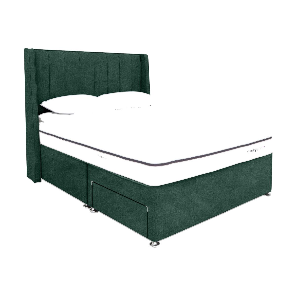 If you sleep better on cushioning, cocooning memory foam but worry about getting too hot at night, a bed or mattress from our Sleepeezee Memory Sense collection is going to be perfect for you. These pocket spring mattresses feature a unique type of ultra-comfortable memory foam infused with graphite that helps disperse body heat. Mattress covers are made with Oxysnse, a material that’s designed to increase your body’s oxygen levels to reduce muscle fatigue, help prevent the risk of sleep apnea and facilitate deeper sleep. Choose a medium or ortho firm feel mattress and pair it with a divan base with optional storage space. The Sleepeezee Memory Sense is exclusive to Furniture Village. This Sleepeezee divan set ticks all the boxes. Beautifully upholstered with optional storage, it comes complete with a superb pocket spring and memory foam mattress with cooling comfort built in. Why you'll love it Revitalising sleep is yours with this Memory Sense 2800 divan set. Mattress has individually pocketed springs for superb, body-responsive medium-feel support. Layer of graphite-infused memory foam takes heat away from the body. Moulds to the shape of your body for excellent pressure relief. Helps distribute weight more evenly for better circulation. With an Oxysense cover which increases the body’s oxygen levels. Reduces muscle fatigue, helps prevent the risk of sleep apnea and facilitates deep sleep. Encapsulated edge-to-edge support helps prevent roll off. No turning required. With handles to make rotating easier. Hypoallergenic. Beautiful upholstered base with optional storage drawers. Wide choice of fabrics. Made by hand in the UK and only at Furniture Village. This divan set is part of our Sleepeezee Memory Sense 2800 range. What you need to know Mattress type: Pocket spring. Depth: 30 cm. Weight:Single 28 kg, small double 35 kg, double 41 kg, king 45 kg and super king 54 kg. Firmness: Medium. Springs: 2,800 in king size. Pillow top: No. Fillings: Polyester-encapsulated border, graphite memory foam. Cover: Oxysense fabric. Requires turning: No. Base type: Platform top with optional storage drawers. Sizes:Single, small double, double, king and super king. Mattress care:Air for 4 hours before using to remove any odour. Indentations caused by settlement of fillings or body weight are normal and are not considered defects. If used on a slatted bed frame, the space between slats must be no wider than 7.5 cm. Spaces wider than this may cause excess dipping of the mattress and invalidate the guarantee. Always use a mattress protector. Rotate regularly. Divan base care: Clean upholstery weekly using a soft brush or vacuum with the curtain attachment. Professional cleaning advised for oil- and grease-based stains. Some fabrics can show wear on areas of more use or in direct sunlight.