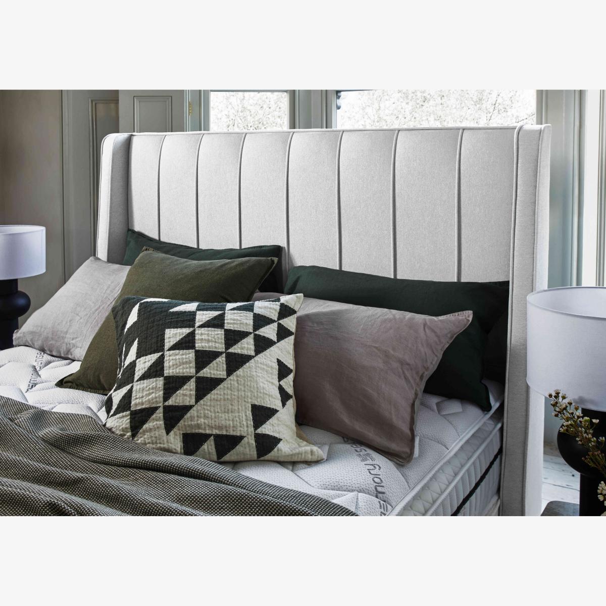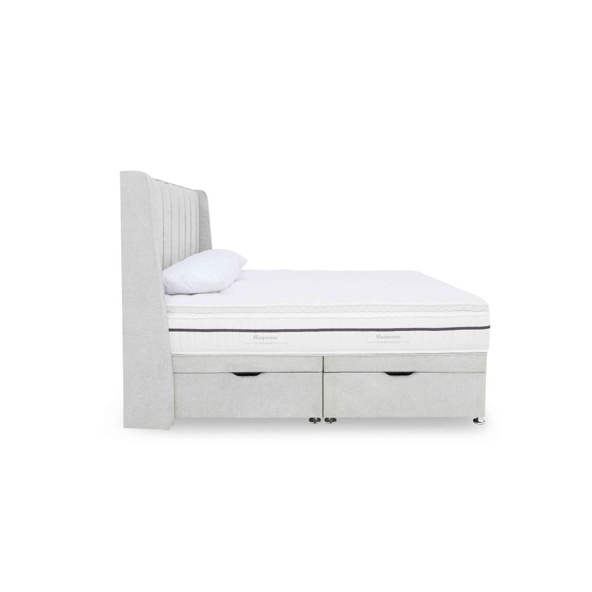 If you sleep better on cushioning, cocooning memory foam but worry about getting too hot at night, a bed or mattress from our Sleepeezee Memory Sense collection is going to be perfect for you. These pocket spring mattresses feature a unique type of ultra-comfortable memory foam infused with graphite that helps disperse body heat. Mattress covers are made with Oxysnse, a material that’s designed to increase your body’s oxygen levels to reduce muscle fatigue, help prevent the risk of sleep apnea and facilitate deeper sleep. Choose a medium or ortho firm feel mattress and pair it with a divan base with optional storage space. The Sleepeezee Memory Sense is exclusive to Furniture Village. We’ve paired this fabulous pocket spring and cooling memory foam mattress with a spacious and practical side-opening ottoman divan base. Only at Furniture Village. Why you'll love it Revitalising sleep is yours with this Memory Sense 2800 ottoman divan set. Mattress has individually pocketed springs for superb, body-responsive medium-feel support. Layer of graphite-infused memory foam takes heat away from the body. Moulds to the shape of your body for excellent pressure relief. Helps distribute weight more evenly for better circulation. With an Oxysense cover which increases the body’s oxygen levels. Reduces muscle fatigue, helps prevent the risk of sleep apnea and facilitates deep sleep. Encapsulated edge-to-edge support helps prevent roll off. No turning required. With handles to make rotating easier. Hypoallergenic. Beautiful upholstered ottoman storage base. Wide choice of fabrics. Made by hand in the UK and only at Furniture Village. This side ottoman divan set is part of our Sleepeezee Memory Sense 2800 range. What you need to know Mattress type: Pocket spring. Depth: 30 cm. Weight:Single 28 kg, small double 35 kg, double 41 kg, king 45 kg and super king 54 kg. Firmness: Medium. Springs: 2,800 in king size. Pillow top: No. Fillings: Polyester-encapsulated border, graphite memory foam. Cover: Oxysense fabric. Requires turning: No. Base type: Platform top with side-ottoman storage. Sizes: Single, small double, double, king and super king. Mattress care:Air for 4 hours before using to remove any odour. Indentations caused by settlement of fillings or body weight are normal and are not considered defects. If used on a slatted bed frame, the space between slats must be no wider than 7.5 cm. Spaces wider than this may cause excess dipping of the mattress and invalidate the guarantee. Always use a mattress protector. Rotate regularly. Divan base care: Clean upholstery weekly using a soft brush or vacuum with the curtain attachment. Professional cleaning advised for oil- and grease-based stains. Some fabrics can show wear on areas of more use or in direct sunlight.