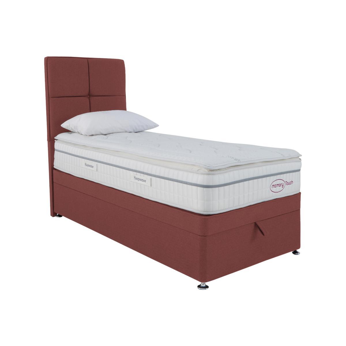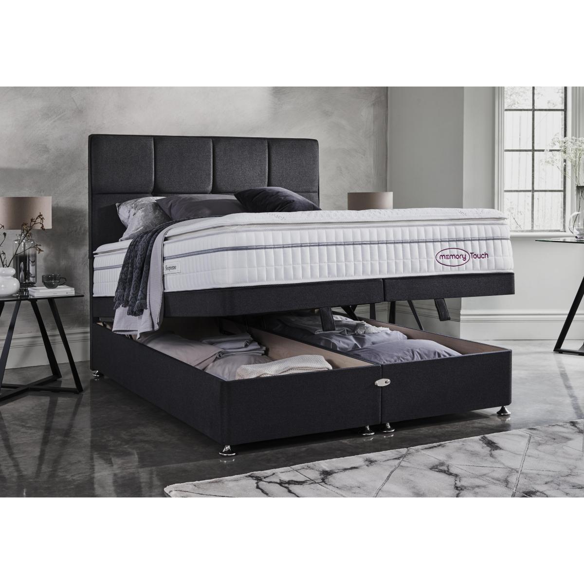 Looking for a new level of comfort plus functional bedroom storage? Meet your new favourite divan set. It comes complete with a handcrafted pillow top mattress and divan base with roomy ottoman storage. Why you’ll love it. Fabulous divan set with sumptuous pillow top mattress. Mattress has 2800 individually-pocketed springs in king size for exceptional support. Memory foam layers offer extra comfort. Hypoallergenic fillings make it a good choice for allergy sufferers. Large under bed storage space for duvets, pillows and clothing. Huge choice of fabrics and colours for the divan base. Range also includes divan sets with optional storage drawers and side-lift ottoman. Sleepeezee holds a Royal Warrant of Appointment granted by HRH The Prince of Wales. Handcrafted in Britain and exclusive to Furniture Village. What you need to know. Headboard shown is available seperately. Mattress type: Pocket spring. Depth: 33 cm. Firmness: Medium. Springs: 2800 in king size. Pillow top: Yes. Fillings: Memory foam and soft white fibre. Cover: Soft knit quilted fabric. Requires turning: No. Base type: Platform top. Sizes: Single, double, king, super king. Mattress care: Air for 4 hours before using to remove any odour. Allow at least 4 hours for springs to settle and for mattress to attain its full size. Indentations caused by settlement of fillings or body weight are normal and are not considered defects. If used on a slatted bed frame, slats must be no more than 7 cm apart. Rotate regularly.