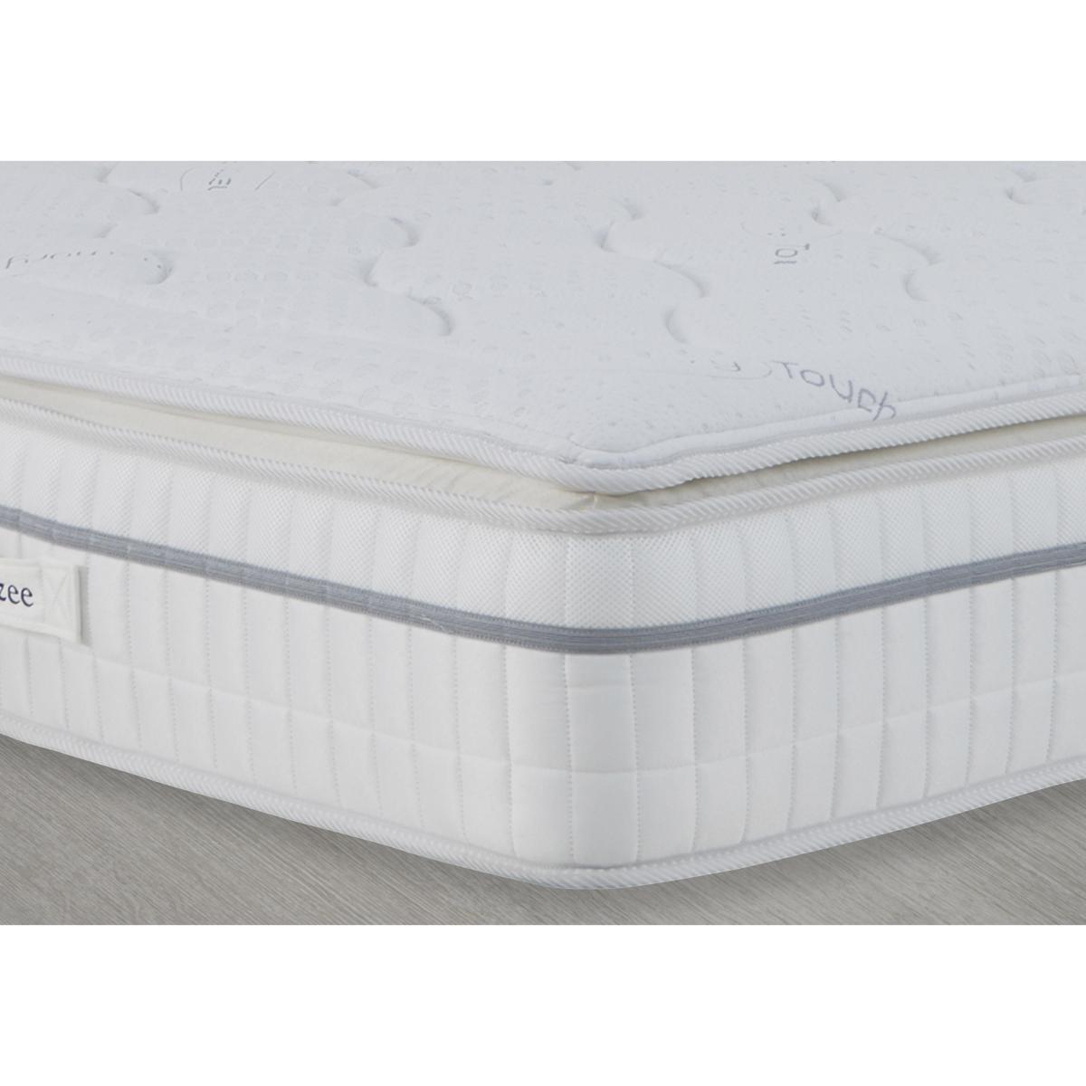 The perfect combination of comfort and support, this handcrafted mattress from Sleepeezee features a sumptuous pillow top as well as 2800 pocket springs in king size. Only at Furniture Village. Why you’ll love it. Body-cushioning pillow top and memory foam layers for outstanding comfort. 2800 individually-pocketed springs in king size offer exceptional support. Hypoallergenic fillings make it a good choice for allergy sufferers. Also available as part of a divan set with optional drawer and ottoman storage. Sleepeezee holds a Royal Warrant of Appointment granted by HRH The Prince of Wales. Handcrafted in Britain and exclusive to Furniture Village. What you need to know. Mattress type: Pocket spring. Depth: 33 cm. Firmness: Medium. Springs: 2800 in king size. Pillow top: Yes. Fillings: Memory foam and soft white fibre. Cover: Soft knit quilted fabric. Requires turning: No. Sizes: Single, double, king, super king. Mattress care: Air for 4 hours before using to remove any odour. Allow at least 4 hours for springs to settle and for mattress to attain its full size. Indentations caused by settlement of fillings or body weight are normal and are not considered defects. If used on a slatted bed frame, slats must be no more than 7 cm apart. Rotate regularly.