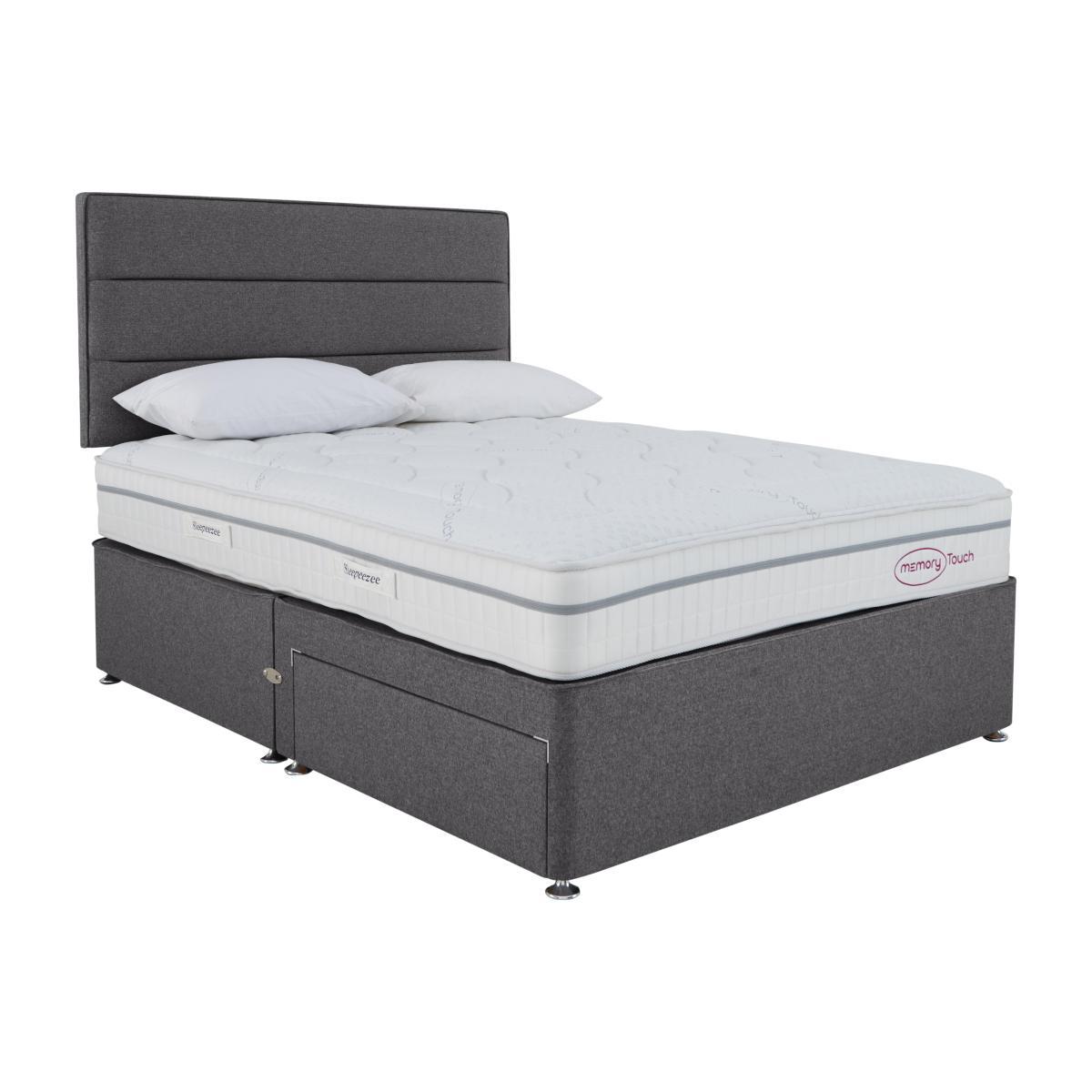 Handcrafted by Sleepeezee and exclusively available at Furniture Village, this firmer-feel mattress offers superior edge support and is set on a divan base with optional storage drawers. Why you’ll love it. Lovely divan set with firmer pocket spring mattress. Responsive pocket springs and superior edge support. No need to turn – just rotate once a week for first 3 months, then monthly. Dynamic edge support springs prevent roll off. Hypoallergenic fillings make it a good choice for allergy sufferers. Huge choice of fabrics and colours for the divan base. Offered with 2, 2 + 2 or 4 optional storage drawers. Range also includes standalone mattress, and end-lift and side-lift ottoman divan sets. Sleepeezee holds a Royal Warrant of Appointment granted by HRH The Prince of Wales. Handcrafted in Britain and exclusive to Furniture Village. What you need to know. Headboard shown is available seperately. Mattress type: Pocket spring. Depth: 25 cm. Firmness: Firm. Springs: 950 in king size. Pillow top: No. Fillings: Memory foam and soft white fibre. Edge support: Yes. Cover: Soft knit quilted fabric. Requires turning: No. Base type: Platform top. Sizes: Single, double, king, super king. Mattress care: Air for 4 hours before using to remove any odour. Allow at least 4 hours for springs to settle and for mattress to attain its full size. Indentations caused by settlement of fillings or body weight are normal and are not considered defects. If used on a slatted bed frame, slats must be no more than 7 cm apart. Rotate regularly.