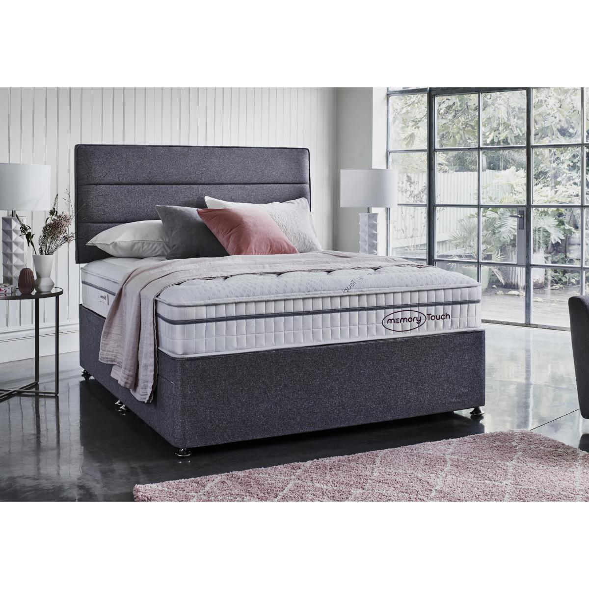 Handcrafted by Sleepeezee and exclusively available at Furniture Village, this firmer-feel mattress offers superior edge support and is set on a divan base with optional storage drawers. Why you’ll love it. Lovely divan set with firmer pocket spring mattress. Responsive pocket springs and superior edge support. No need to turn – just rotate once a week for first 3 months, then monthly. Dynamic edge support springs prevent roll off. Hypoallergenic fillings make it a good choice for allergy sufferers. Huge choice of fabrics and colours for the divan base. Offered with 2, 2 + 2 or 4 optional storage drawers. Range also includes standalone mattress, and end-lift and side-lift ottoman divan sets. Sleepeezee holds a Royal Warrant of Appointment granted by HRH The Prince of Wales. Handcrafted in Britain and exclusive to Furniture Village. What you need to know. Headboard shown is available seperately. Mattress type: Pocket spring. Depth: 25 cm. Firmness: Firm. Springs: 950 in king size. Pillow top: No. Fillings: Memory foam and soft white fibre. Edge support: Yes. Cover: Soft knit quilted fabric. Requires turning: No. Base type: Platform top. Sizes: Single, double, king, super king. Mattress care: Air for 4 hours before using to remove any odour. Allow at least 4 hours for springs to settle and for mattress to attain its full size. Indentations caused by settlement of fillings or body weight are normal and are not considered defects. If used on a slatted bed frame, slats must be no more than 7 cm apart. Rotate regularly.
