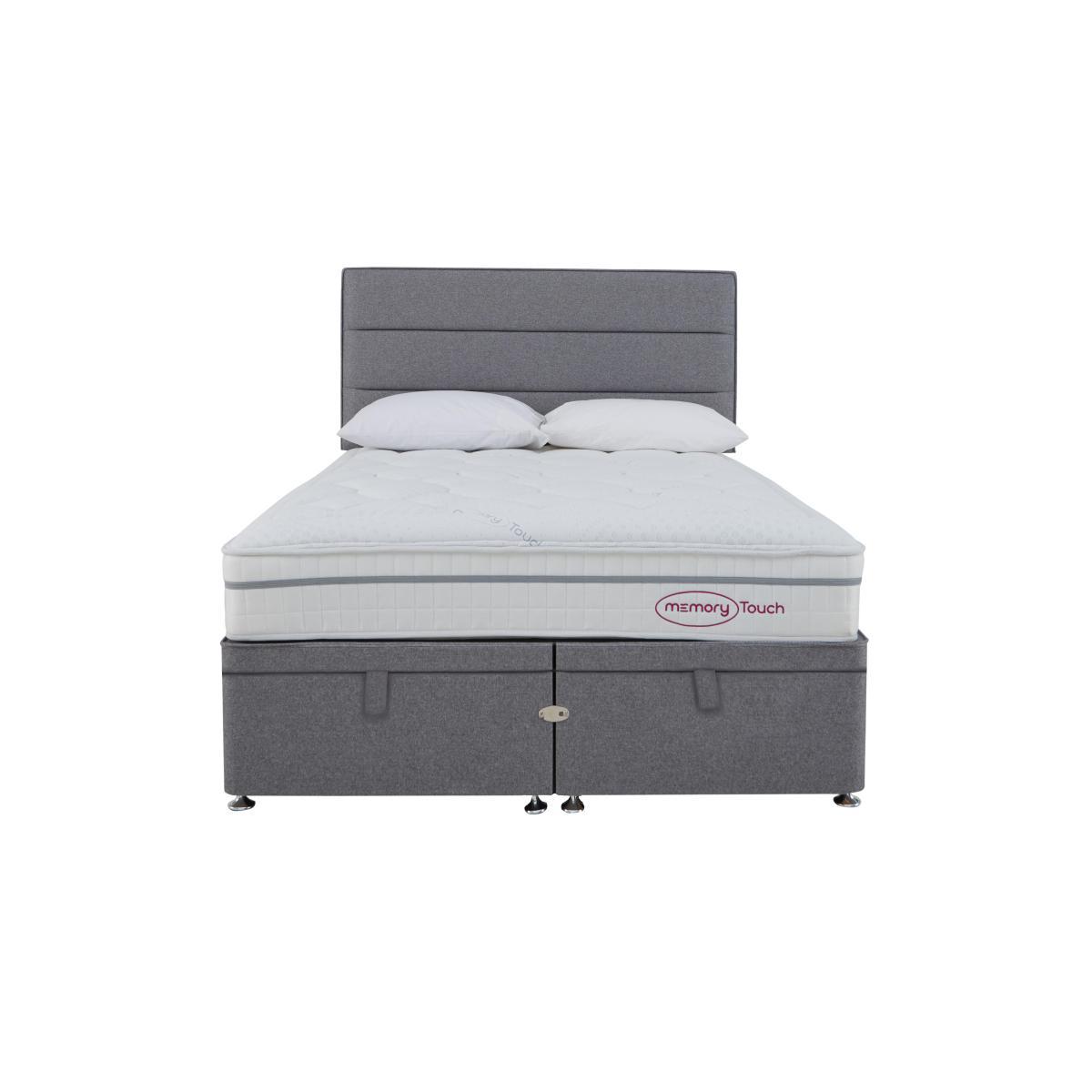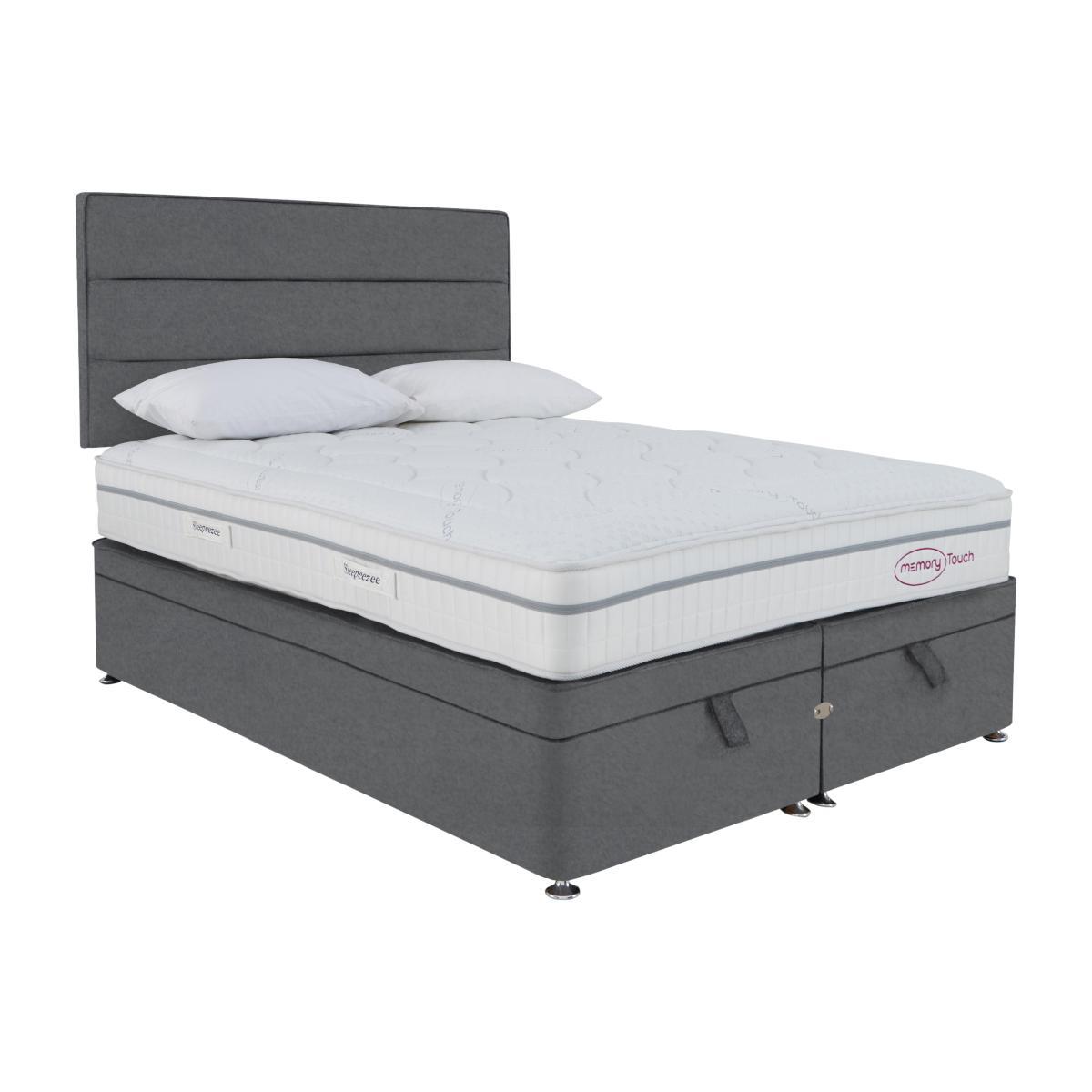 Firmer-feel mattress comfort with layers of memory foam and superior edge support. All that and spacious ottoman storage too. By Sleepeezee and only available at Furniture Village. Why you’ll love it. Lovely divan set with firmer pocket spring mattress. Responsive pocket springs and superior edge support. No need to turn – just rotate once a week for first 3 months, then monthly. Dynamic edge support springs prevent roll off. Hypoallergenic fillings make it a good choice for allergy sufferers. Large under bed storage space for duvets, pillows and clothing. Huge choice of fabrics and colours for the divan base. Range also includes divan sets with optional storage drawers and side-lift ottoman. Sleepeezee holds a Royal Warrant of Appointment granted by HRH The Prince of Wales. Handcrafted in Britain and exclusive to Furniture Village. What you need to know. Headboard shown is available seperately. Mattress type: Pocket spring. Depth: 25 cm. Firmness: Firm. Springs: 950 in king size. Pillow top: No. Fillings: Memory foam and soft white fibre. Edge support: Yes. Cover: Soft knit quilted fabric. Requires turning: No. Base type: Platform top. Sizes: Single, double, king, super king. Mattress care: Air for 4 hours before using to remove any odour. Allow at least 4 hours for springs to settle and for mattress to attain its full size. Indentations caused by settlement of fillings or body weight are normal and are not considered defects. If used on a slatted bed frame, slats must be no more than 7 cm apart. Rotate regularly.
