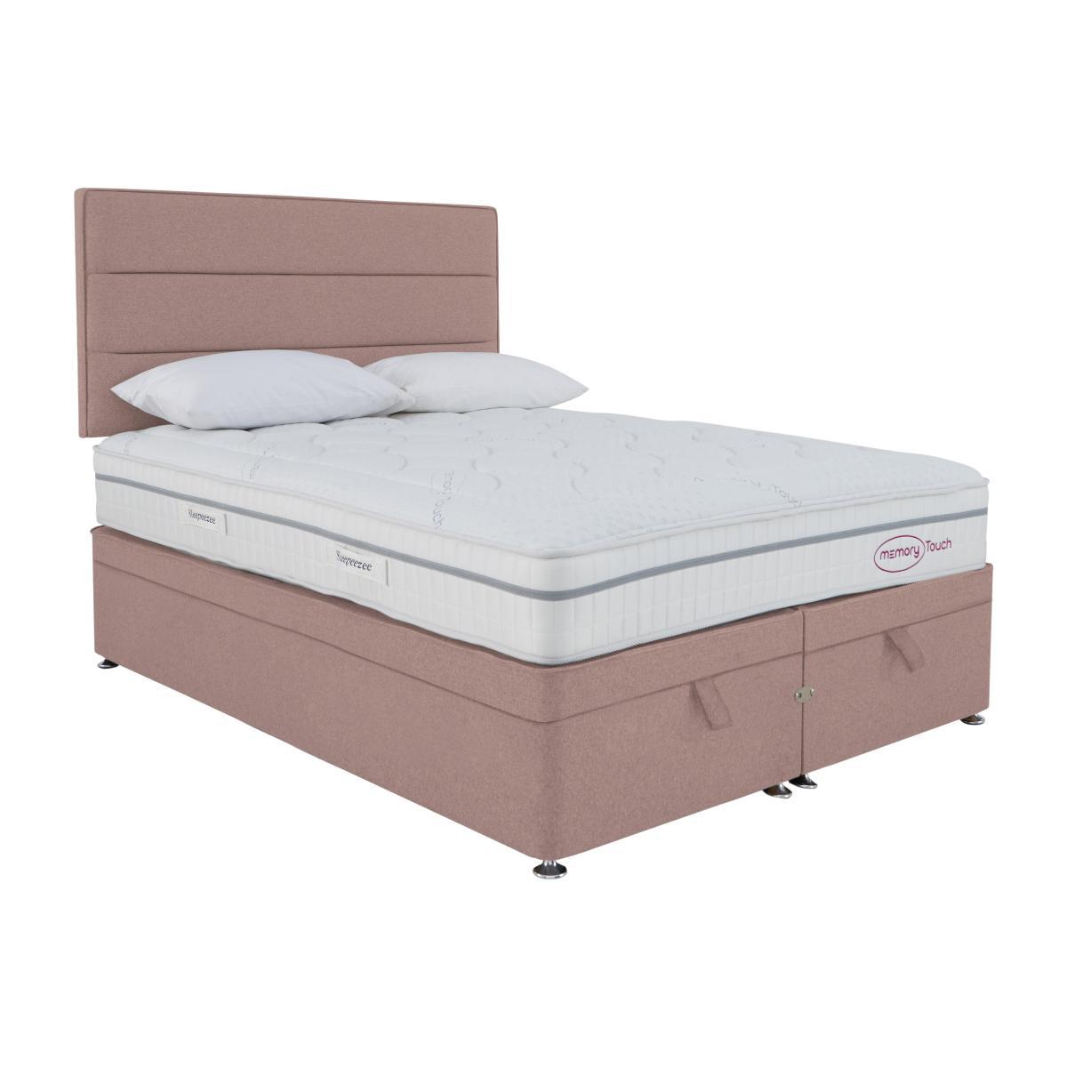 Firmer-feel mattress comfort with layers of memory foam and superior edge support. All that and spacious ottoman storage too. By Sleepeezee and only available at Furniture Village. Why you’ll love it. Lovely divan set with firmer pocket spring mattress. Responsive pocket springs and superior edge support. No need to turn – just rotate once a week for first 3 months, then monthly. Dynamic edge support springs prevent roll off. Hypoallergenic fillings make it a good choice for allergy sufferers. Large under bed storage space for duvets, pillows and clothing. Huge choice of fabrics and colours for the divan base. Range also includes divan sets with optional storage drawers and side-lift ottoman. Sleepeezee holds a Royal Warrant of Appointment granted by HRH The Prince of Wales. Handcrafted in Britain and exclusive to Furniture Village. What you need to know. Headboard shown is available seperately. Mattress type: Pocket spring. Depth: 25 cm. Firmness: Firm. Springs: 950 in king size. Pillow top: No. Fillings: Memory foam and soft white fibre. Edge support: Yes. Cover: Soft knit quilted fabric. Requires turning: No. Base type: Platform top. Sizes: Single, double, king, super king. Mattress care: Air for 4 hours before using to remove any odour. Allow at least 4 hours for springs to settle and for mattress to attain its full size. Indentations caused by settlement of fillings or body weight are normal and are not considered defects. If used on a slatted bed frame, slats must be no more than 7 cm apart. Rotate regularly.