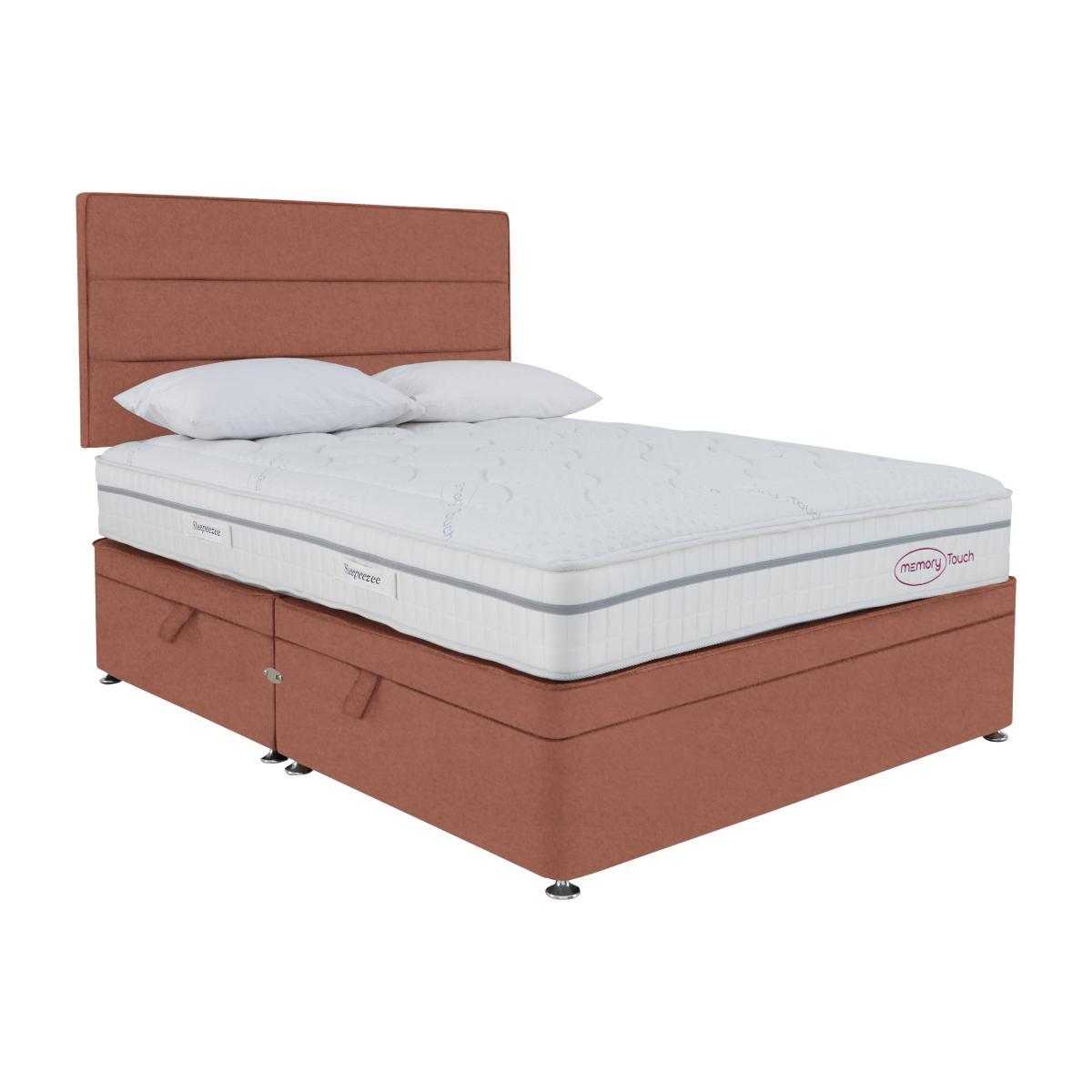 Firm support meets body-cushioning memory foam in this fantastic Sleepeezee ortho mattress. And for extra convenience, the divan base has an easy-to-access side-lift ottoman storage space. Why you’ll love it. Lovely divan set with firmer pocket spring mattress. Responsive pocket springs and superior edge support. No need to turn – just rotate once a week for first 3 months, then monthly. Dynamic edge support springs prevent roll off. Hypoallergenic fillings make it a good choice for allergy sufferers. Large under bed storage space for duvets, pillows and clothing. Huge choice of fabrics and colours for the divan base. Range also includes divan sets with optional storage drawers and end-lift ottoman. Sleepeezee holds a Royal Warrant of Appointment granted by HRH The Prince of Wales. Handcrafted in Britain and exclusive to Furniture Village. What you need to know. Headboard shown is available seperately. Mattress type: Pocket spring. Depth: 25 cm. Firmness: Firm. Springs: 950 in king size. Pillow top: No. Fillings: Memory foam and soft white fibre. Edge support: Yes. Cover: Soft knit quilted fabric. Requires turning: No. Base type: Platform top. Sizes: Single, double, king, super king. Mattress care: Air for 4 hours before using to remove any odour. Allow at least 4 hours for springs to settle and for mattress to attain its full size. Indentations caused by settlement of fillings or body weight are normal and are not considered defects. If used on a slatted bed frame, slats must be no more than 7 cm apart. Rotate regularly.