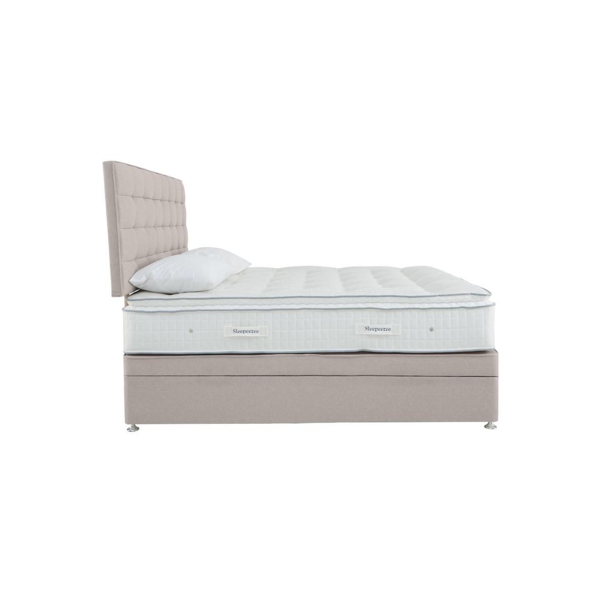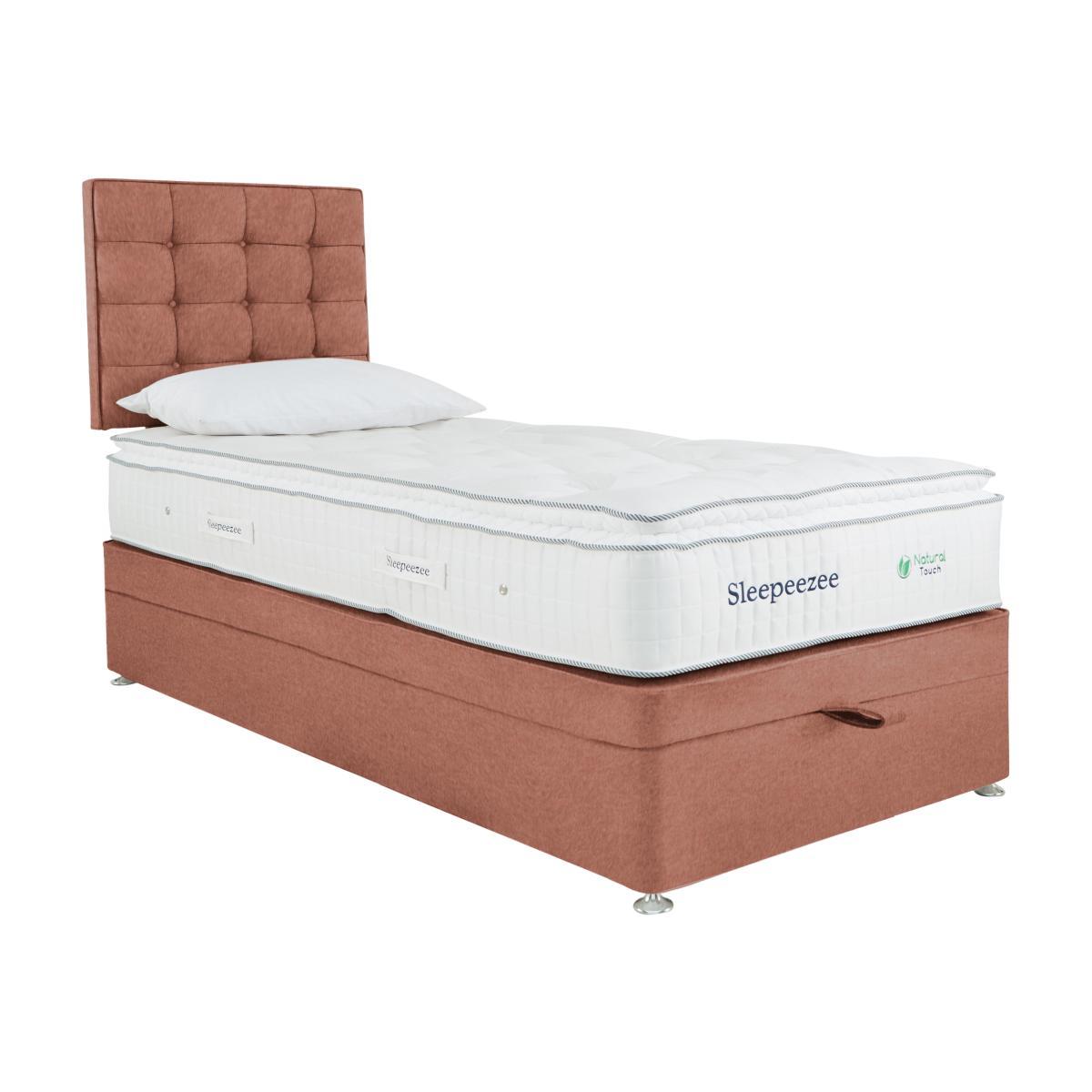 Sometimes, nature knows best. That’s why Sleepeezee has harnessed the power of nature’s finest materials in its new Natural Touch 2000 Pillowtop range. Two generous layers of British wool keep you cool in summer and warm in winter, while a natural damask cover offers impressive breathability. But it’s the way its 2000 pocket springs respond to your body’s every movement, that makes this range so comfortable. You always feel supported, and the result is a deeply restful night’s sleep every day of the week. It comes in a stylish traditional divan that’s compatible with all of Sleepeezee’s headboards, so you can really make it your own. It’s also available in a zip and link design which can be joined and separated, so it’s easy to rotate and fit through the narrowest of staircases. Handmade in the UK exclusively for Furniture Village, this is long-lasting natural comfort at its best. Sometimes, nature really does know best. This Sleepeezee pillowtop ottoman divan set brings together the best natural materials like British wool and 2000 steel pocket springs to deliver deep comfort. And it comes with storage too. Why you'll love it. A natural pocket sprung mattress by Sleepeezee. Luxurious pillowtop for a deeper night’s sleep. 2000 pocket springs offer superior total-body support. Stay warm in winter and cool in summer with two layers of British wool. Breathable chemical-free damask cover. Traditional divan base in a wide choice of colours. Easy to access, end-lift ottoman storage. Create your perfect look. Compatible with all Sleepeezee headboards. Handmade in the UK exclusively for Furniture Village. What you need to know. Headboard shown is available separately. Mattress type: Pocket spring. Depth: 34cm. Firmness: Medium feel. Springs: 2000 pocket springs in king size. Pillowtop: Yes. Fillings: British wool, pocket springs, Superbond foam. Borders: Standard tape edge with carry handles. Edge support: Yes. Cover: 100% natural viscose. Requires turning: Rotating only due to pillowtop. Base type: Platform top. Sizes: Single, double, king, super king. Mattress care: Air for 4 hours before using to remove any odour. Indentations caused by settlement of fillings or body weight are normal and are not considered defects. If used on a slatted bed frame, slats must be no more than 7 cm apart. Rotate regularly. We recommend the use of a mattress protector. Please take care when opening and closing the ottoman. Double, king and super king divan bases are delivered in two pieces for ease of delivery.