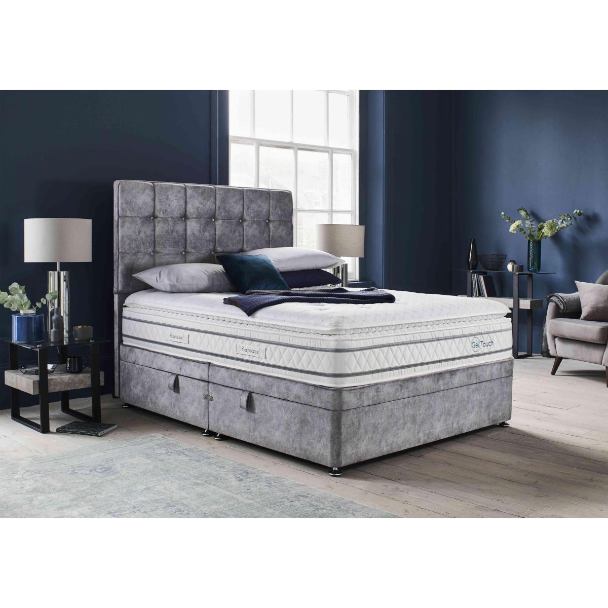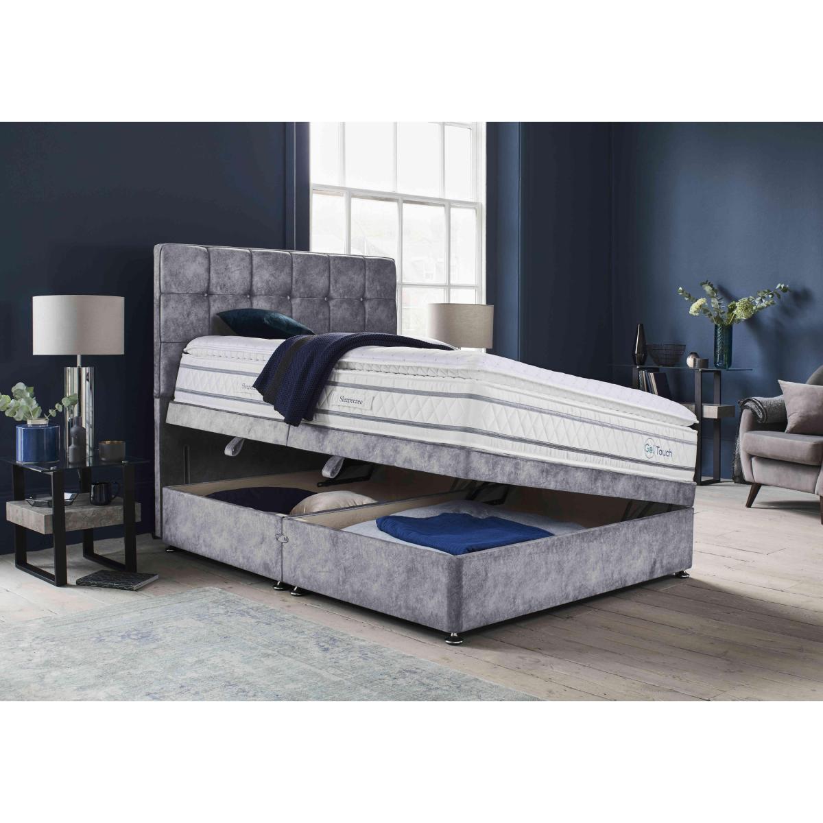 Beautiful Sleepeezee divan base in a wide choice of fabrics. With spacious side-lift ottoman storage compartment. Handcrafted in Britain and exclusive to Furniture Village. Stylish and practical, the Sleepeezee side-lift ottoman divan base makes a fabulous focal point in any bedroom and offers fantastic hidden storage, a must for the modern home. Handcrafted in Britain, this platform-top base provides support to any type of bed. And because it's made by Sleepeezee, you can count on the sturdy construction and high-quality materials. The side-lift ottoman storage space is a real bonus – it’s easy to access even in a more compact bedroom, and offers roomy storage that’s ideal if you need a place to store spare pillows and bulky items of clothing. This divan base is offered in single, double king and super king bed sizes, and is available in a huge choice of fabric styles including tweed, woven and plush and an even wider selection of gorgeous colours. The Sleepeezee side-lift ottoman divan base is exclusively available at Furniture Village. If you’re looking for a bed with storage drawers, take a look at the Sleepeezee divan bed base with optional drawers. Please note. Headboard and mattress shown may be purchased separately.