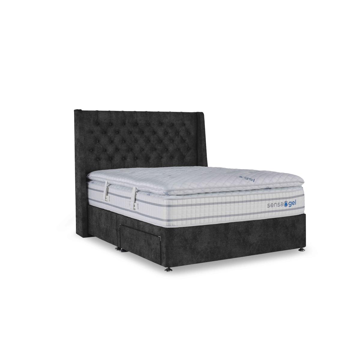 Our exclusive Sleepeezee Sensa Gel range of mattresses and divan sets is designed to be sensitive to your sleep needs in more ways than one. As the name suggests, mattresses have a unique gel filling – Dreamzone gel foam – that responds to heat and pressure as well as covers with special cooling properties. And alongside pocket springs for responsive support, mattresses are layered with memory foam and have toppers that are filled with ultra-responsive mini springs. As well as four different mattress feels from firm to soft, you’ll also find upholstered divan sets with optional drawers and ottoman storage and even an electric-powered ottoman divan set. Handcrafted for Furniture Village. The luxurious mattress in this stylish Sleepeezee divan set is designed to be sensitive to your sleep needs with responsive pocket and mini springs, Dreamzone gel foam and even a removable topper. Why you'll love it Divan set with a luxuriously soft and sensitive mattress that responds to body heat and pressure. Cool-touch top panel is proven to reduce body temperature. With pocket springs and mini springs that adjust independently for optimal support. Mattress fillings include Dreamzone profiled body-contouring gel foam. Dreamzone helps relieve pressure and draws heat away from your body. With a sumptuous topper filled with Dreamzone gel foam and memory foam. Topper is removable so it can be turned and rotated to help maintain its shape. Excellent edge-to-edge support improves comfort and prevents that feeling of rolling off. Hypoallergenic. Easy to care for – this mattress doesn’t require turning. Simply rotate with the seasons. Platform-top base with a choice of optional storage drawers. Available in a wide selection of stylish upholstery fabrics. Handcrafted exclusively for Furniture Village. This divan set is part of our Sleepeezee Sensa Gel range. What you need to know Headboard is an optional extra. Mattress type: Hybrid. Depth: 40 cm. Weight:Single 58.24 kg, small double 78.98 kg, double 86.98 kg, king 94.98 kg and super king 113.10 kg. Firmness:Soft. Spring count: 12000 pocket springs and mini springs. Mattress fillings: Dreamzone profiled body-contouring gel foam, soft comfort layer, high-density support layer, mini springs, traditional pocket springs. Pillow top:Yes. Pillow top fillings: Dreamzone gel foam, memory foam. Cover: Cool-touch knitted cover. Requires turning: Mattress does not require turning. Removable topper should be turned and rotated with the seasons. Base type: Platform top with optional drawer storage. Sizes: Single, small double, double, king, super king. Mattress care:Air for 4 hours before using to remove any odour. Allow at least 4 hours for springs to settle and for mattress to attain its full size. Indentations caused by settlement of fillings or body weight are normal and are not considered defects. If used on a slatted bed frame, the space between slats must be no wider than 7.5 cm. Spaces wider than this may cause excess dipping of the mattress and invalidate the guarantee. Always use a mattress protector. Rotate regularly. Divan base care: Clean upholstery weekly using a soft brush or vacuum with the curtain attachment. Professional cleaning advised for oil- and grease-based stains. Ordering a double, king or super king size? Your divan base will be supplied in two halves for easier access.