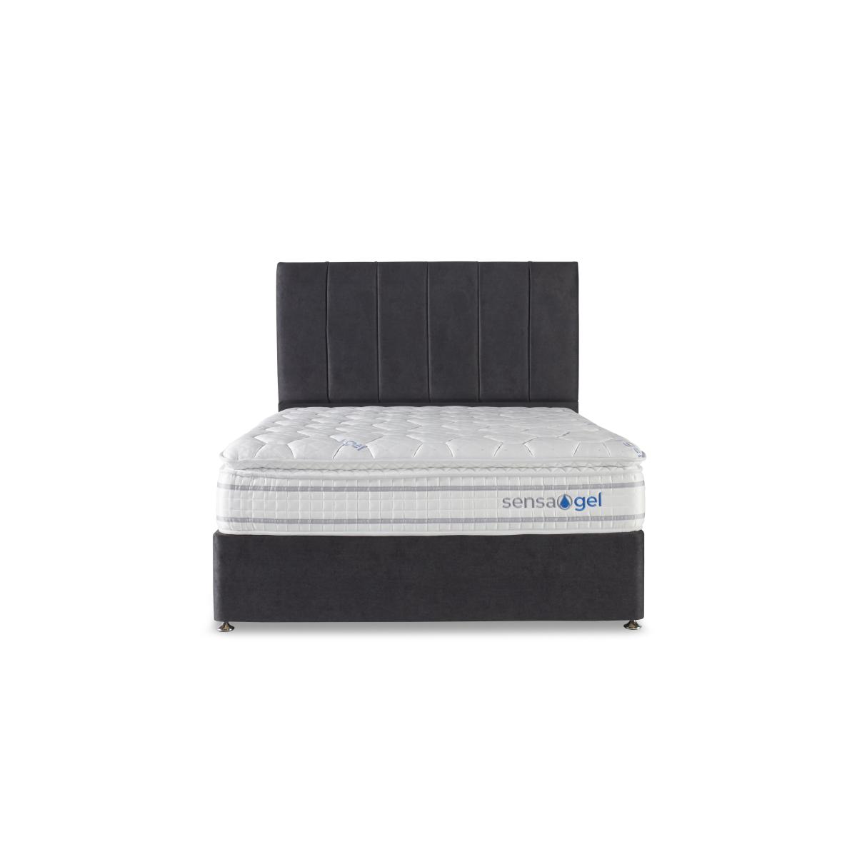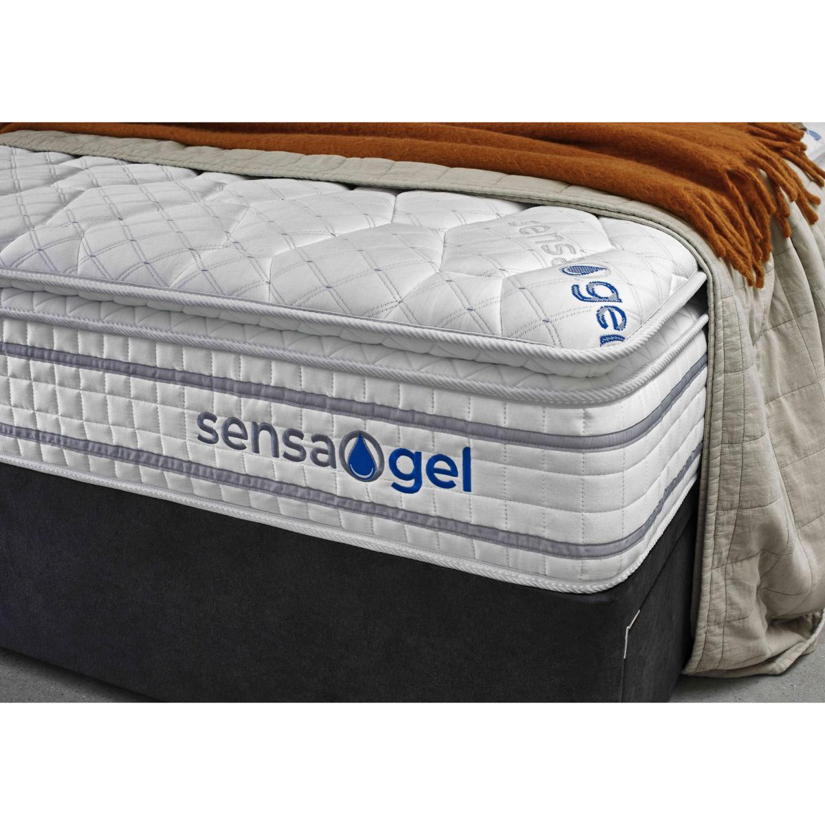 Our exclusive Sleepeezee Sensa Gel range of mattresses and divan sets is designed to be sensitive to your sleep needs in more ways than one. As the name suggests, mattresses have a unique gel filling – Dreamzone gel foam – that responds to heat and pressure as well as covers with special cooling properties. And alongside pocket springs for responsive support, mattresses are layered with memory foam and have toppers that are filled with ultra-responsive mini springs. As well as four different mattress feels from firm to soft, you’ll also find upholstered divan sets with optional drawers and ottoman storage and even an electric-powered ottoman divan set. Handcrafted for Furniture Village. Enjoy firm-mattress support with built-in pressure relief and cooling comfort plus a stylish divan base with your choice of optional storage drawers. Handcrafted. Why you'll love it This Sleepeezee divan set includes a firm mattress that’s sensitive to your sleep needs. Cool-touch top panel is proven to reduce body temperature. With pocket springs and mini springs that adjust independently for optimal support. Built-in topper has mini springs, memory foam and Dreamzone profiled body-contouring gel foam. Dreamzone helps relieve pressure and draws heat away from your body. Excellent edge-to-edge support improves comfort and prevents that feeling of rolling off. Hypoallergenic. Easy to care for – this mattress doesn’t require turning. Simply rotate with the seasons. Platform-top base with a choice of optional storage drawers. Available in a wide selection of stylish upholstery fabrics. Handcrafted exclusively for Furniture Village. This divan set is part of our Sleepeezee Sensa Gel range. What you need to know Headboard is an optional extra. Mattress type: Hybrid. Depth: 30 cm. Weight:Single 45.46 kg, small double 62.8 kg, double 69.92 kg, king 74.89 kg and super king 89.46 kg. Firmness: Firm. Spring count: 4300 pocket springs and mini springs. Mattress fillings: High-density support layer, mini springs, traditional pocket springs. Pillow top:Yes. Pillow top fillings: Soft comfort layer, high-density support layer, memory foam, Dreamzone profiled body-contouring gel foam, mini springs. Cover: Cool-touch knitted cover. Requires turning: No. Base type: Platform top with optional drawer storage. Sizes: Single, small double, double, king, super king. Mattress care:Air for 4 hours before using to remove any odour. Allow at least 4 hours for springs to settle and for mattress to attain its full size. Indentations caused by settlement of fillings or body weight are normal and are not considered defects. If used on a slatted bed frame, the space between slats must be no wider than 7.5 cm. Spaces wider than this may cause excess dipping of the mattress and invalidate the guarantee. Always use a mattress protector. Rotate regularly. Divan base care: Clean upholstery weekly using a soft brush or vacuum with the curtain attachment. Professional cleaning advised for oil- and grease-based stains. Ordering a double, king or super king size? Your divan base will be supplied in two halves for easier access.