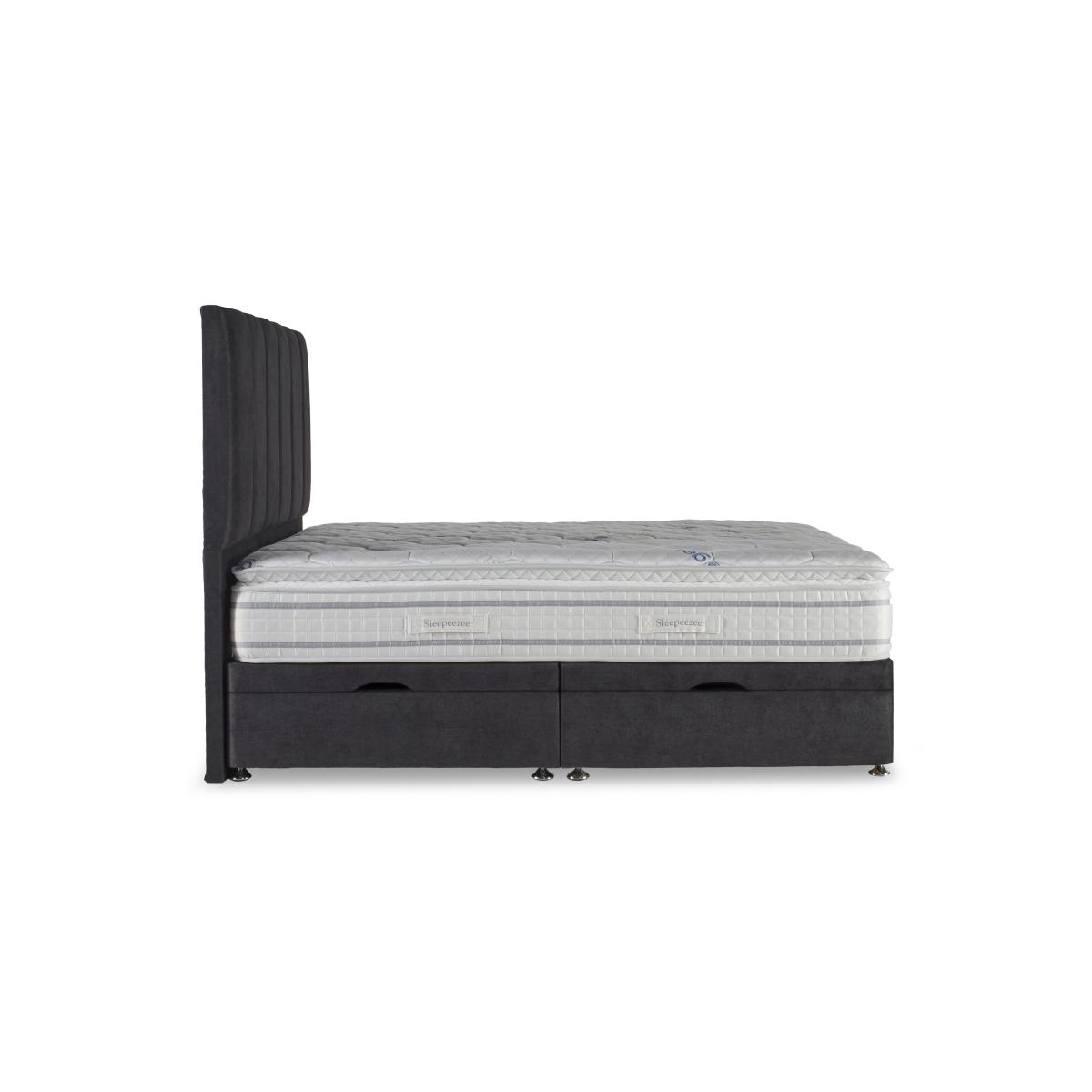Our exclusive Sleepeezee Sensa Gel range of mattresses and divan sets is designed to be sensitive to your sleep needs in more ways than one. As the name suggests, mattresses have a unique gel filling – Dreamzone gel foam – that responds to heat and pressure as well as covers with special cooling properties. And alongside pocket springs for responsive support, mattresses are layered with memory foam and have toppers that are filled with ultra-responsive mini springs. As well as four different mattress feels from firm to soft, you’ll also find upholstered divan sets with optional drawers and ottoman storage and even an electric-powered ottoman divan set. Handcrafted for Furniture Village. With space-saving side-opening ottoman storage plus a firm-feel mattress with Dreamzone gel foam for cooling comfort, this handcrafted Sleepeezee divan set is sensitive to your sleep needs. Why you'll love it This Sleepeezee ottoman divan set includes a firm mattress that’s sensitive to your sleep needs. Cool-touch top panel is proven to reduce body temperature. With pocket springs and mini springs that adjust independently for optimal support. Built-in topper has mini springs, memory foam and Dreamzone profiled body-contouring gel foam. Dreamzone helps relieve pressure and draws heat away from your body. Excellent edge-to-edge support improves comfort and prevents that feeling of rolling off. Hypoallergenic. Easy to care for – this mattress doesn’t require turning. Simply rotate with the seasons. Platform-top base with spacious side-opening ottoman storage compartment. Available in a wide selection of stylish upholstery fabrics. Handcrafted exclusively for Furniture Village. This ottoman divan set is part of our Sleepeezee Sensa Gel range. What you need to know Headboard is an optional extra. Mattress type: Hybrid. Depth: 30 cm. Weight:Single 45.46 kg, double 69.92 kg, king 74.89 kg and super king 89.46 kg. Firmness: Firm. Spring count: 4300 pocket springs and mini springs. Mattress fillings: High-density support layer, mini springs, traditional pocket springs. Pillow top:Yes. Pillow top fillings: Soft comfort layer, high-density support layer, memory foam, Dreamzone profiled body-contouring gel foam, mini springs. Cover: Cool-touch knitted cover. Requires turning: No. Base type: Platform top with side-opening ottoman storage. Sizes: Single, double, king and super king. Mattress care:Air for 4 hours before using to remove any odour. Allow at least 4 hours for springs to settle and for mattress to attain its full size. Indentations caused by settlement of fillings or body weight are normal and are not considered defects. If used on a slatted bed frame, the space between slats must be no wider than 7.5 cm. Spaces wider than this may cause excess dipping of the mattress and invalidate the guarantee. Always use a mattress protector. Rotate regularly. Divan base care: Clean upholstery weekly using a soft brush or vacuum with the curtain attachment. Professional cleaning advised for oil- and grease-based stains. Be careful care when opening and closing the ottoman base. Ordering a double, king or super king size? Your divan base will be supplied in two halves for easier access.