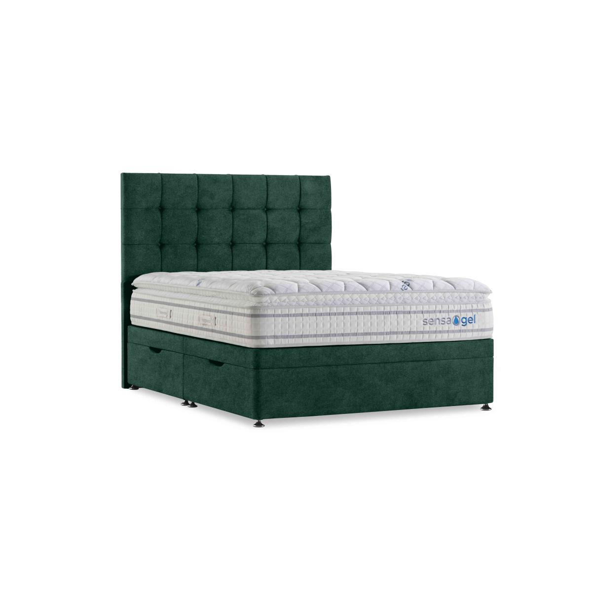 Our exclusive Sleepeezee Sensa Gel range of mattresses and divan sets is designed to be sensitive to your sleep needs in more ways than one. As the name suggests, mattresses have a unique gel filling – Dreamzone gel foam – that responds to heat and pressure as well as covers with special cooling properties. And alongside pocket springs for responsive support, mattresses are layered with memory foam and have toppers that are filled with ultra-responsive mini springs. As well as four different mattress feels from firm to soft, you’ll also find upholstered divan sets with optional drawers and ottoman storage and even an electric-powered ottoman divan set. Handcrafted for Furniture Village. This stylish ottoman divan set opens at the side to save space and includes a fantastic medium-feel mattress with cushioning, cooling Dreamzone gel foam and a built-in topper. Why you'll love it Medium-feel mattress support meets body-sensitive cooling comfort in this ottoman divan set. Cool-touch top panel is proven to reduce body temperature. With pocket springs and mini springs that adjust independently for optimal support. Mattress fillings include Dreamzone profiled body-contouring gel foam. Dreamzone helps relieve pressure and draws heat away from your body. Built-in topper is filled with mini springs and memory foam. Excellent edge-to-edge support improves comfort and prevents that feeling of rolling off. Hypoallergenic. Easy to care for – this mattress doesn’t require turning. Simply rotate with the seasons. Platform-top base with spacious side-opening ottoman storage compartment. Available in a wide selection of stylish upholstery fabrics. Handcrafted exclusively for Furniture Village. This ottoman divan set is part of our Sleepeezee Sensa Gel range. What you need to know Headboard is an optional extra. Mattress type: Hybrid. Depth: 31 cm. Weight:Single 36.13 kg, double 51.99 kg, king 59.65 kg and super king 70.52 kg. Firmness: Medium. Spring count: 6100 pocket springs and mini springs. Mattress fillings: Dreamzone profiled body-contouring gel foam, high-density support layer, mini springs, traditional pocket springs. Pillow top:Yes. Pillow top fillings: Soft comfort layer, high-density support layer, double-depth memory foam, mini pocket springs. Cover: Cool-touch knitted cover. Requires turning: No. Base type: Platform top with side-opening ottoman storage. Sizes: Single, double, king and super king. Mattress care:Air for 4 hours before using to remove any odour. Allow at least 4 hours for springs to settle and for mattress to attain its full size. Indentations caused by settlement of fillings or body weight are normal and are not considered defects. If used on a slatted bed frame, the space between slats must be no wider than 7.5 cm. Spaces wider than this may cause excess dipping of the mattress and invalidate the guarantee. Always use a mattress protector. Rotate regularly. Divan base care: Clean upholstery weekly using a soft brush or vacuum with the curtain attachment. Professional cleaning advised for oil- and grease-based stains. Be careful care when opening and closing the ottoman base. Ordering a double, king or super king size? Your divan base will be supplied in two halves for easier access.