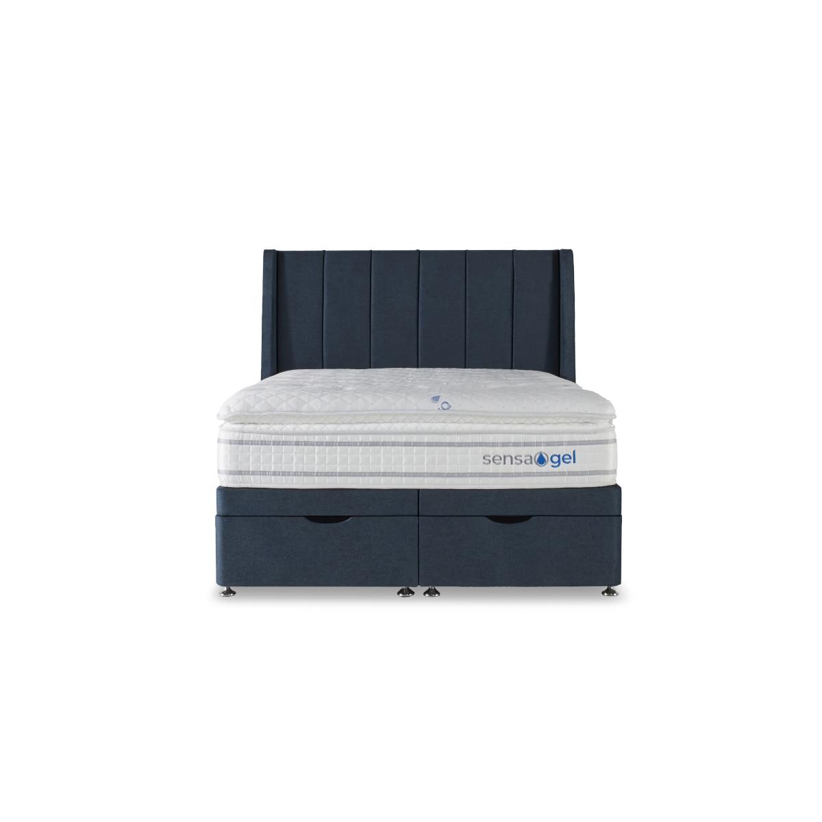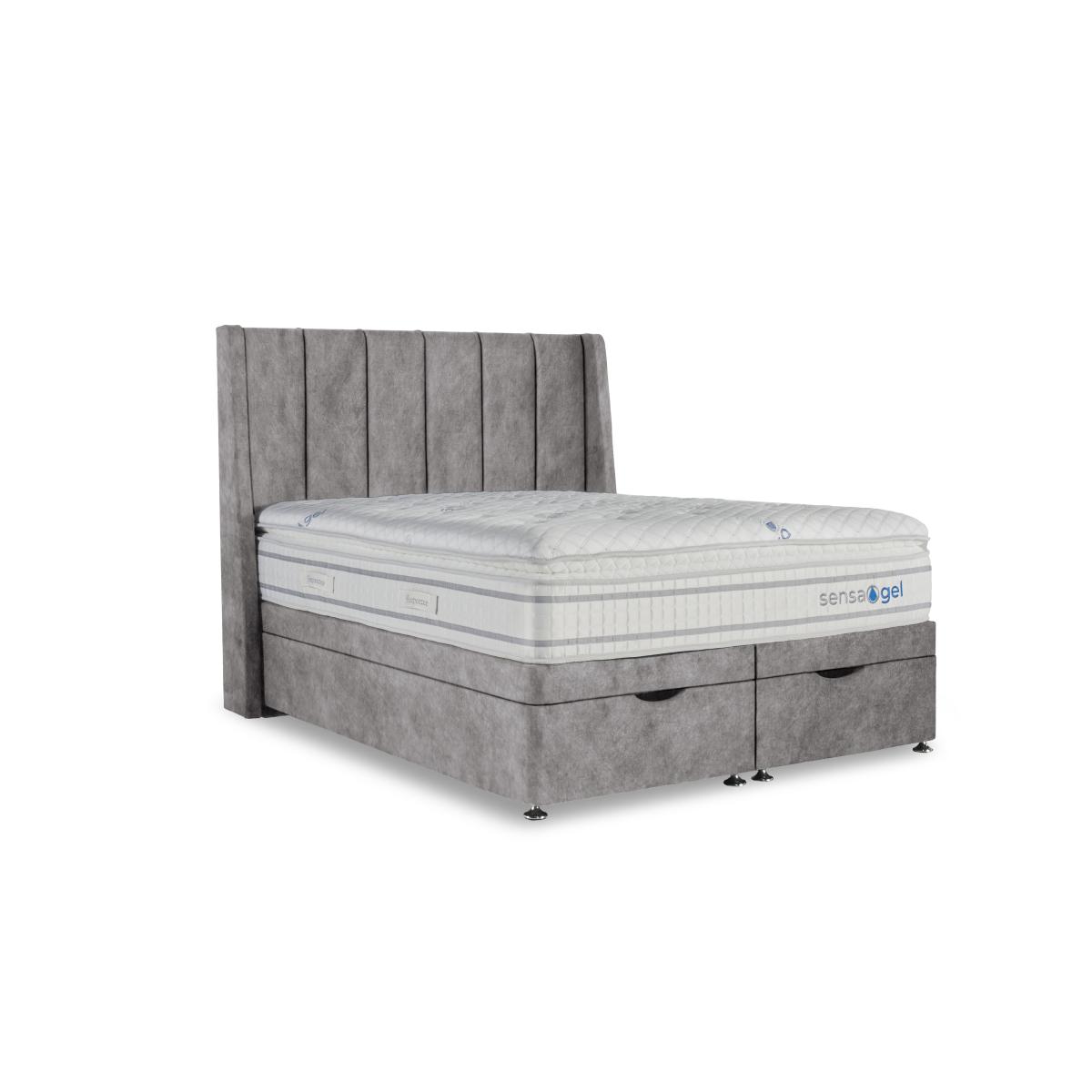 Our exclusive Sleepeezee Sensa Gel range of mattresses and divan sets is designed to be sensitive to your sleep needs in more ways than one. As the name suggests, mattresses have a unique gel filling – Dreamzone gel foam – that responds to heat and pressure as well as covers with special cooling properties. And alongside pocket springs for responsive support, mattresses are layered with memory foam and have toppers that are filled with ultra-responsive mini springs. As well as four different mattress feels from firm to soft, you’ll also find upholstered divan sets with optional drawers and ottoman storage and even an electric-powered ottoman divan set. Handcrafted for Furniture Village. Sleep better with a mattress that’s more sensitive. This divan set includes the superb Sensa Gel 9000 mattress and has spacious ottoman storage, too. Why you'll love it Sensitive to heat and pressure, the fantastic medium-feel mattress in this ottoman divan set lulls you to sleep. Cool-touch top panel is proven to reduce body temperature. With pocket springs and mini springs that adjust independently for optimal support. Mattress fillings include Dreamzone profiled body-contouring gel foam. Dreamzone helps relieve pressure and draws heat away from your body. Built-in topper is filled with mini springs, super soft memory foam and more. Excellent edge-to-edge support improves comfort and prevents that feeling of rolling off. Hypoallergenic. Easy to care for – this mattress doesn’t require turning. Simply rotate with the seasons. Platform-top base with spacious end-opening ottoman storage compartment. Available in a wide selection of stylish upholstery fabrics. Handcrafted exclusively for Furniture Village. This ottoman divan set is part of our Sleepeezee Sensa Gel range. What you need to know Headboard is an optional extra. Mattress type: Hybrid. Depth: 32 cm. Weight:Single 40.03 kg, double 60.04 kg, king 65.42 kg and super king 77.99 kg. Firmness: Medium. Spring count: 9000 pocket springs and mini springs. Mattress fillings: Dreamzone profiled body-contouring gel foam, mini springs, traditional pocket springs. Pillow top:Yes. Pillow top fillings: Soft comfort layer, high-density support layer, super-soft memory foam, mini springs. Cover: Cool-touch knitted cover. Requires turning: No. Base type: Platform top with end-opening ottoman storage. Sizes: Single, double, king and super king. Mattress care:Air for 4 hours before using to remove any odour. Allow at least 4 hours for springs to settle and for mattress to attain its full size. Indentations caused by settlement of fillings or body weight are normal and are not considered defects. If used on a slatted bed frame, the space between slats must be no wider than 7.5 cm. Spaces wider than this may cause excess dipping of the mattress and invalidate the guarantee. Always use a mattress protector. Rotate regularly. Divan base care: Clean upholstery weekly using a soft brush or vacuum with the curtain attachment. Professional cleaning advised for oil- and grease-based stains. Be careful care when opening and closing the ottoman base. Ordering a double, king or super king size? Your divan base will be supplied in two halves for easier access.