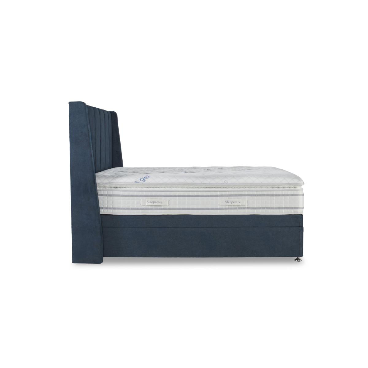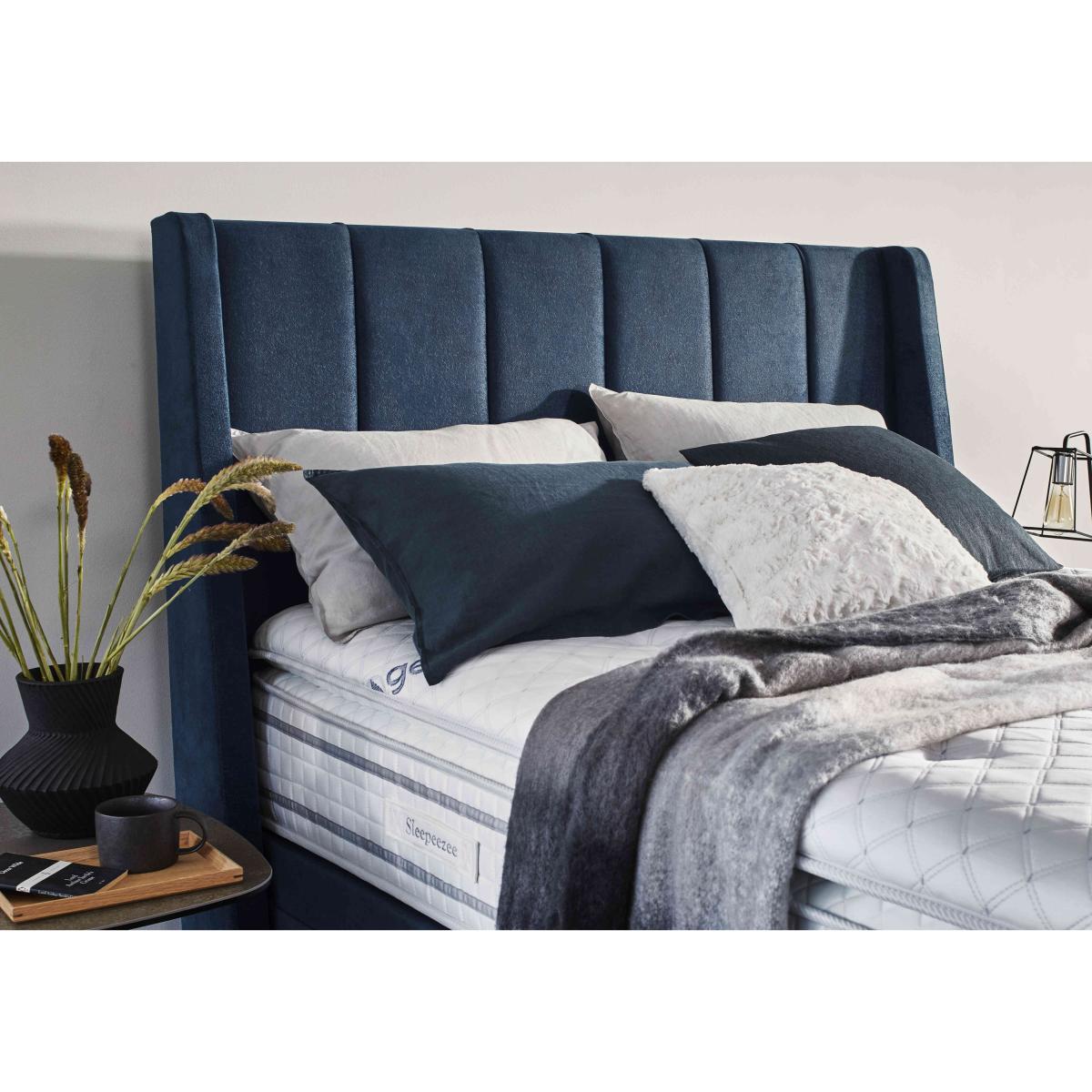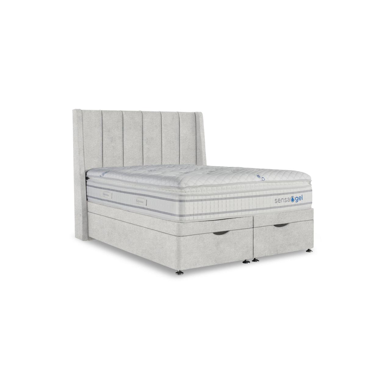 Our exclusive Sleepeezee Sensa Gel range of mattresses and divan sets is designed to be sensitive to your sleep needs in more ways than one. As the name suggests, mattresses have a unique gel filling – Dreamzone gel foam – that responds to heat and pressure as well as covers with special cooling properties. And alongside pocket springs for responsive support, mattresses are layered with memory foam and have toppers that are filled with ultra-responsive mini springs. As well as four different mattress feels from firm to soft, you’ll also find upholstered divan sets with optional drawers and ottoman storage and even an electric-powered ottoman divan set. Handcrafted for Furniture Village. Sleep better with a mattress that’s more sensitive. This divan set includes the superb Sensa Gel 9000 mattress and has spacious ottoman storage, too. Why you'll love it Sensitive to heat and pressure, the fantastic medium-feel mattress in this ottoman divan set lulls you to sleep. Cool-touch top panel is proven to reduce body temperature. With pocket springs and mini springs that adjust independently for optimal support. Mattress fillings include Dreamzone profiled body-contouring gel foam. Dreamzone helps relieve pressure and draws heat away from your body. Built-in topper is filled with mini springs, super soft memory foam and more. Excellent edge-to-edge support improves comfort and prevents that feeling of rolling off. Hypoallergenic. Easy to care for – this mattress doesn’t require turning. Simply rotate with the seasons. Platform-top base with spacious end-opening ottoman storage compartment. Available in a wide selection of stylish upholstery fabrics. Handcrafted exclusively for Furniture Village. This ottoman divan set is part of our Sleepeezee Sensa Gel range. What you need to know Headboard is an optional extra. Mattress type: Hybrid. Depth: 32 cm. Weight:Single 40.03 kg, double 60.04 kg, king 65.42 kg and super king 77.99 kg. Firmness: Medium. Spring count: 9000 pocket springs and mini springs. Mattress fillings: Dreamzone profiled body-contouring gel foam, mini springs, traditional pocket springs. Pillow top:Yes. Pillow top fillings: Soft comfort layer, high-density support layer, super-soft memory foam, mini springs. Cover: Cool-touch knitted cover. Requires turning: No. Base type: Platform top with end-opening ottoman storage. Sizes: Single, double, king and super king. Mattress care:Air for 4 hours before using to remove any odour. Allow at least 4 hours for springs to settle and for mattress to attain its full size. Indentations caused by settlement of fillings or body weight are normal and are not considered defects. If used on a slatted bed frame, the space between slats must be no wider than 7.5 cm. Spaces wider than this may cause excess dipping of the mattress and invalidate the guarantee. Always use a mattress protector. Rotate regularly. Divan base care: Clean upholstery weekly using a soft brush or vacuum with the curtain attachment. Professional cleaning advised for oil- and grease-based stains. Be careful care when opening and closing the ottoman base. Ordering a double, king or super king size? Your divan base will be supplied in two halves for easier access.