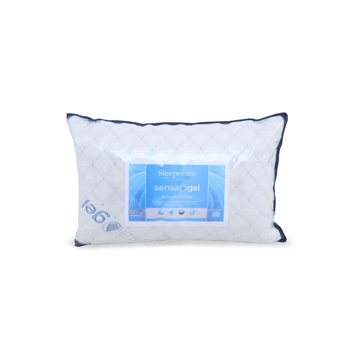 Our exclusive Sleepeezee Sensa Gel range of mattresses and divan sets is designed to be sensitive to your sleep needs in more ways than one. As the name suggests, mattresses have a unique gel filling – Dreamzone gel foam – that responds to heat and pressure as well as covers with special cooling properties. And alongside pocket springs for responsive support, mattresses are layered with memory foam and have toppers that are filled with ultra-responsive mini springs. As well as four different mattress feels from firm to soft, you’ll also find upholstered divan sets with optional drawers and ottoman storage and even an electric-powered ottoman divan set. Handcrafted for Furniture Village. Offering cushioning support as well as cooling comfort, this pillow is more attuned to your sleep needs. Only at Furniture Village. Why you'll love it Choose our Sensa Gel pillow for responsive comfort and support. Filled with Sleepeezee’s innovative StayCool™ gel. Provides cushioning comfort for your head, neck and shoulders. StayCool™ gel also helps regulate body temperature for cooler sleep. Pillow cover is removable and machine washable at 30°C. Handcrafted exclusively for Furniture Village. This pillow is part of our Sleepeezee Sensa Gel range. What you need to know On unwrapping, you might notice a slight odour. This is harmless and will dissipate after airing. For reasons of hygiene, we are unable to refund or exchange pillows. Dimensions Width: 68 cm (27 in). Depth: 46 cm (19 in). Height: 22 cm (9 in).