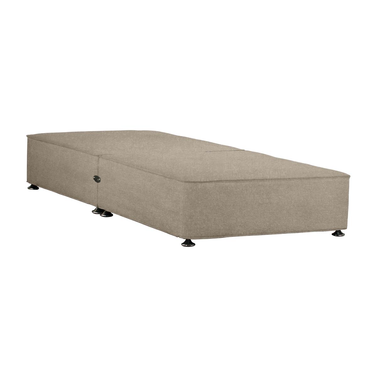This Sleepeezee shallow divan base instantly gives your bedroom contemporary flair. Add your choice of optional storage drawers and make it a practical choice as well as a stylish one. Why you'll love it Fashionably shallow divan base gives any bedroom contemporary style. Modern slimline look. In a huge choice of fabrics including plush, woven and tweed. Stands on elegant silver-coloured legs. You can even add optional storage drawers. Handcrafted in the UK. This shallow divan base is part of our Sleepeezee collection. What you need to know Headboard and mattress shown are available separately. Base depth: 25 cm. Base type: Platform top with optional storage drawers. Sizes: Single, small double, double, king, super king. Clean upholstery weekly using a soft brush or vacuum with the curtain attachment. Professional cleaning advised for oil- and grease-based stains. Some fabrics can show wear on areas of more use or in direct sunlight. Small double, double, king and super king sizes will be delivered in two pieces.