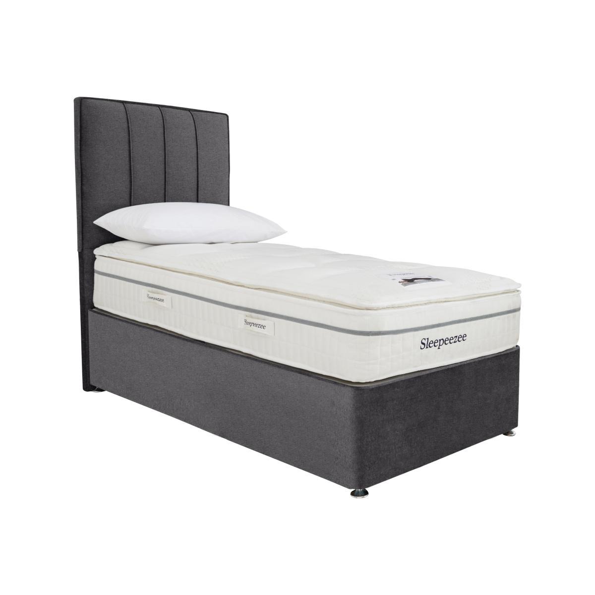 Peace and tranquillity is yours with the handcrafted Sleepeezee Tranquility 2800 collection. The medium feel 33 cm mattress has a sumptuously soft pillow top for body-cushioning comfort plus 2800 individually-nested pocket springs in king size that provide superbly responsive support. Soft white fibre and memory foam fillings make this one of the most comfortable mattresses around, while providing welcome reassurance for allergy sufferers. It’s paired with a beautifully upholstered platform-top divan base that’s available in a wide choice of fabrics and comes with useful optional storage drawers. The Sleepeezee Tranquility 2800 collection is exceptionally well-priced and only at Furniture Village. Made in Britain by Sleepeezee, holders of a Royal Warrant from HRH The Prince of Wales. Headboard is an optional extra. Peace and tranquility is yours with the Sleepeezee Tranquility 2800 divan set. And you’ll likely find the price very relaxing too. This superb divan set comprises a stunning 33 cm mattress with sumptuous body-cushioning pillow top that’s designed to cocoon you in comfort. Medium in feel, it has 2800 individually-nested pocket springs for exceptionally precise support. And it’s ideal for allergy sufferers, too, thanks to the layers of hypoallergenic soft white fibre and memory foam fillings. It’s paired with a beautifully upholstered platform-top divan base that’s available with optional storage drawers and in a wide range of fabrics. Handcrafted in Britain by Sleepeezee, holders of a Royal Warrant of Appointment granted by HRH The Prince of Wales Sleepeezee, the Tranquility 2800 divan set is part of the Sleepeezee Tranquility 2800 collection and is exclusively available at Furniture Village. Product images are representative. Find out more. Please note. The mattress should be aired for four hours after delivery to freshen and remove any aroma from storage. It may take time for your mattress to attain its full size once the springs have settled to the correct position. This is due to the mattress being upright during transit. Settlement of fillings and indentations caused by body weight compressing the fillings are natural and not considered defects. This can be minimised by regular rotating (unless yours is a dual tension mattress).