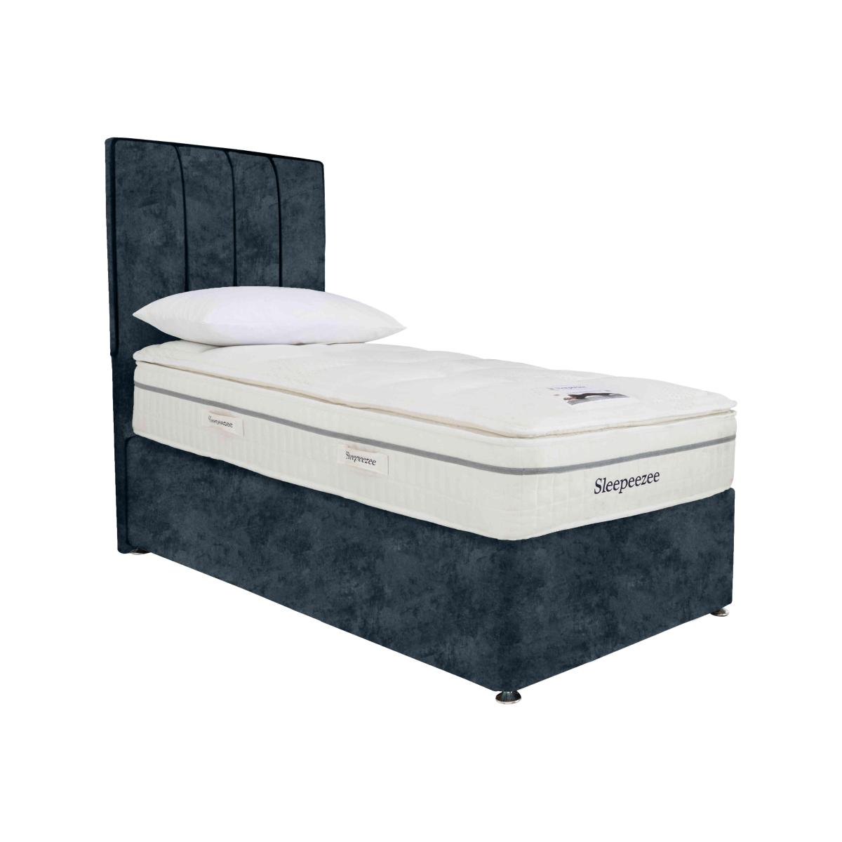 Peace and tranquillity is yours with the handcrafted Sleepeezee Tranquility 2800 collection. The medium feel 33 cm mattress has a sumptuously soft pillow top for body-cushioning comfort plus 2800 individually-nested pocket springs in king size that provide superbly responsive support. Soft white fibre and memory foam fillings make this one of the most comfortable mattresses around, while providing welcome reassurance for allergy sufferers. It’s paired with a beautifully upholstered platform-top divan base that’s available in a wide choice of fabrics and comes with useful optional storage drawers. The Sleepeezee Tranquility 2800 collection is exceptionally well-priced and only at Furniture Village. Made in Britain by Sleepeezee, holders of a Royal Warrant from HRH The Prince of Wales. Headboard is an optional extraPeace and tranquility is yours with the Sleepeezee Tranquility 2800 divan set. And you’ll likely find the price very relaxing too. This superb divan set comprises a stunning 33 cm mattress with sumptuous body-cushioning pillow top that’s designed to cocoon you in comfort. Medium in feel, it has 2800 individually-nested pocket springs for exceptionally precise support. And it’s ideal for allergy sufferers, too, thanks to the layers of hypoallergenic soft white fibre and memory foam fillings. It’s paired with a beautifully upholstered platform-top divan base that’s available with optional storage drawers and in a wide range of fabrics. Handcrafted in Britain by Sleepeezee, holders of a Royal Warrant of Appointment granted by HRH The Prince of Wales Sleepeezee, the Tranquility 2800 divan set is part of the Sleepeezee Tranquility 2800 collection and is exclusively available at Furniture Village. Product images are representative. Find out morePlease note: The mattress should be aired for four hours after delivery to freshen and remove any aroma from storage. It may take time for your mattress to attain its full size once the springs have settled to the correct position. This is due to the mattress being upright during transit. Settlement of fillings and indentations caused by body weight compressing the fillings are natural and not considered defects. This can be minimised by regular rotating (unless yours is a dual tension mattress).