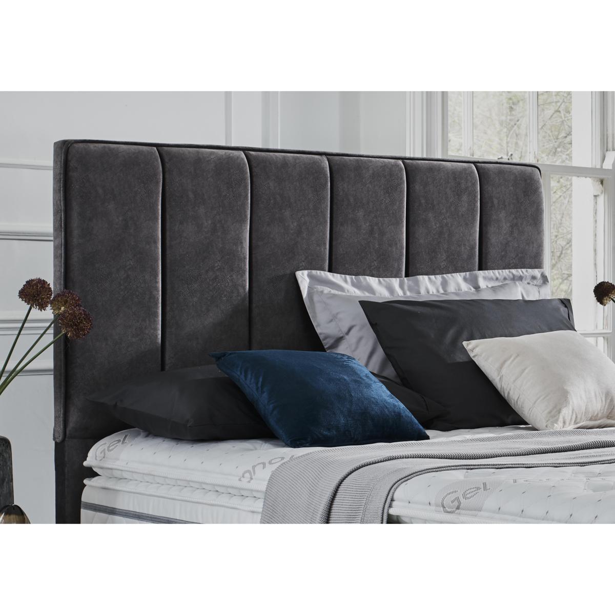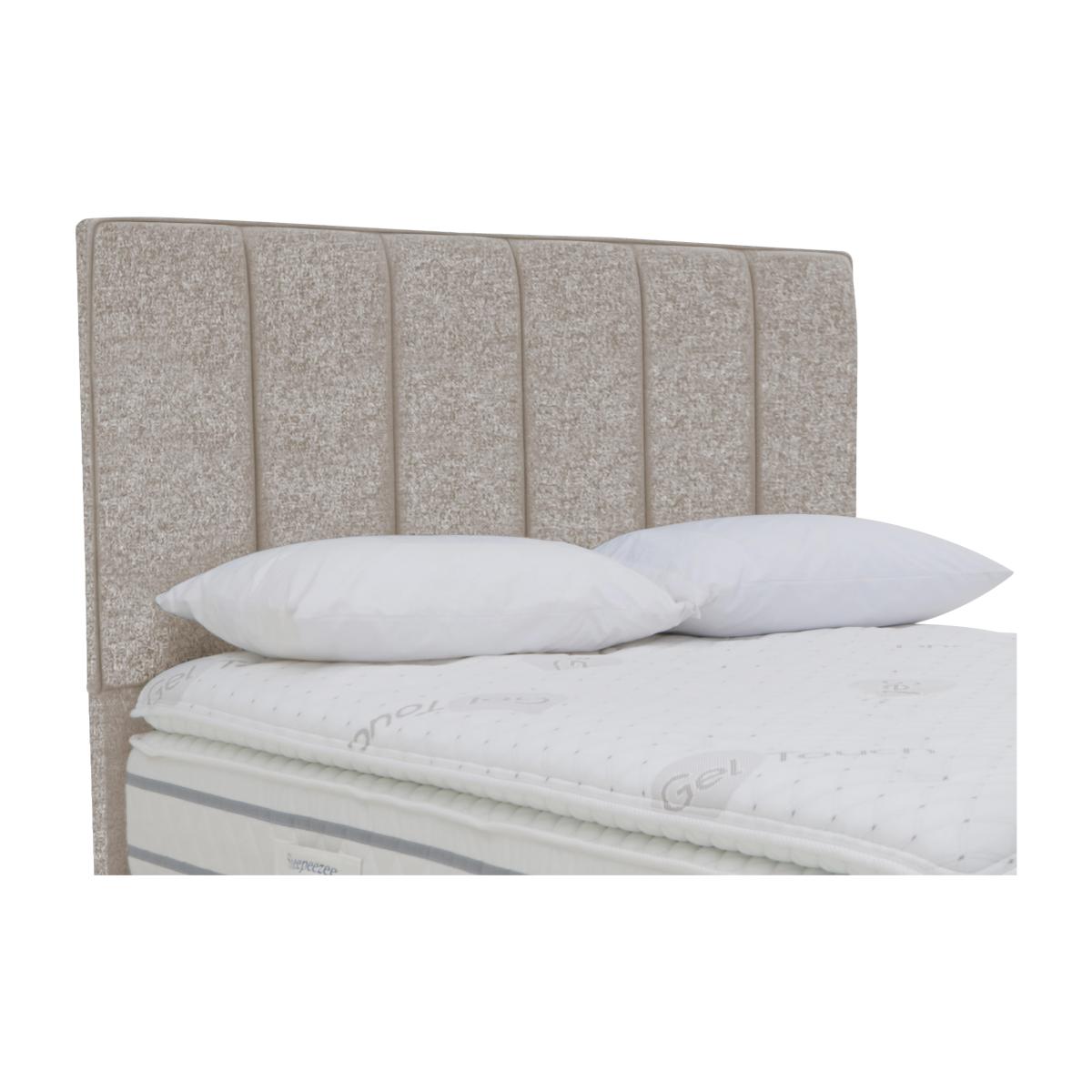 Contemporary square-edged headboard with fluting. Generously cushioned and offered in a huge choice of fabrics. Handcrafted in Britain and exclusive to Furniture Village. Simple, stylish and elegant, the Sleepeezee Whistler floor standing headboard brings contemporary flair to any bedroom. With its square edges and understated vertical fluting, this well-cushioned headboard makes an effortless style statement and is the perfect finishing touch to any bedroom. It’s fully upholstered from top to bottom, a feature which gives it a high-end and well-finished appearance. Choose from a wide range of fabrics, all of which are available in a range of stunning colours. If you prefer, you can order a strutted version of this headboard. The Sleepeezee Whistler floor standing headboard is designed to work with the versatile storage drawer and side-lift ottoman divan bases in the Sleepeezee Gel Touch collection. Usefully, this headboard may be attached to any standard size divan base using the hardware. Handcrafted in Britain by Sleepeezee, the Sleepeezee Whistler floor standing headboard is exclusively available at Furniture Village.