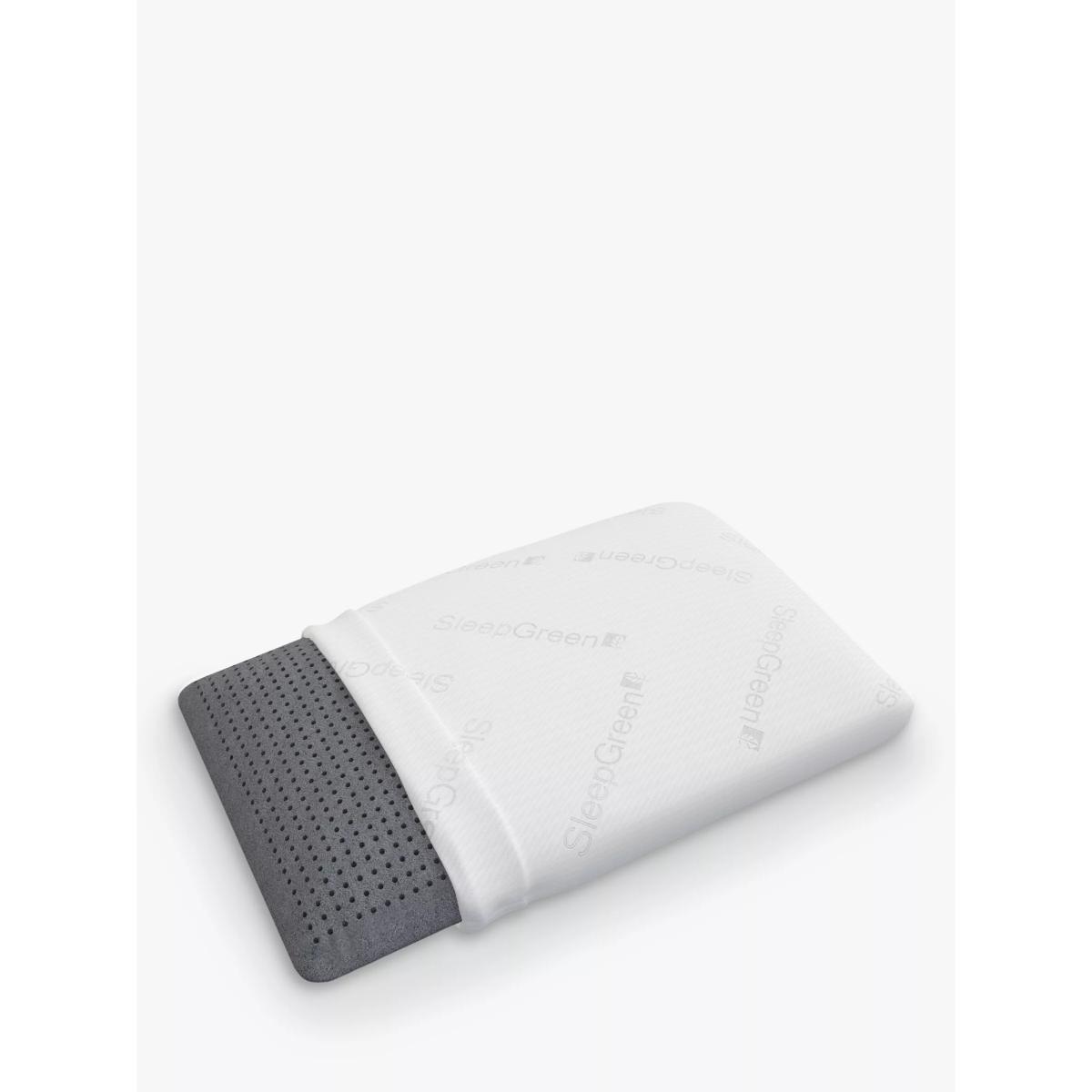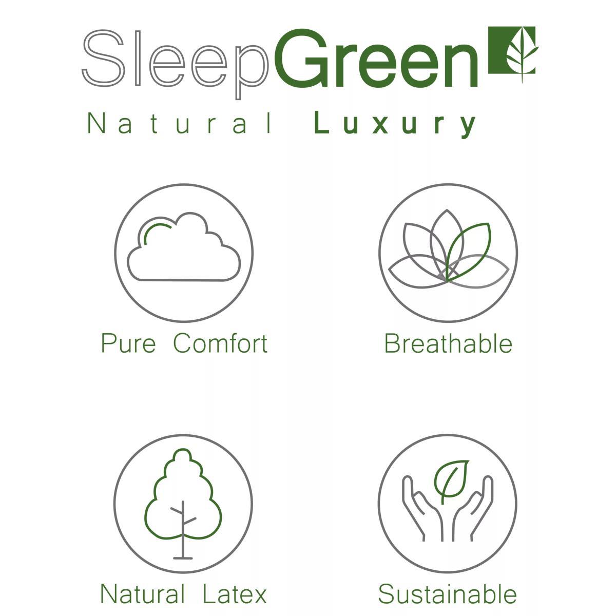 Enjoy a healthy sleep environment with this SleepGreen pillow. Suitable for all sleeper types, its supportive core is filled with a chemical-free, natural latex known as Talalay. And with an outer cover produced from sustainable raw materials, including seaweed, it's an innovative and natural combination that's designed to support you, and provide you with beneficial vitamins and cooling minerals while you sleep. This pillow is made in the UK. The chemical-free, natural latex filling has resilient buoyancy, so it helps to relieve pressure and tension for a comfortable night's sleep. It's also a naturally breathable and luxurious material that provides cool and cushioning comfort Without any artificial additives or petrochemicals, the latex is also hypoallergenic and offers optimal ventilation. So, this pillow is well-suited for people with asthma or those who suffer from dust-mite allergies With a design that's kinder to the environment, the yarn in the outer cover is produced from sustainable raw materials, using methods that save both energy and resources. The filling is also biodegradable The outer cover contains sustainably-sourced seaweed which is naturally rich in vitamins, trace elements, amino acids and cooling minerals. These unique properties help to protect your skin against harmful environmental influences that you're exposed to each day This means that your comfortable new pillow helps to reduce inflammation and activate cell regeneration on your skin in a totally natural way This pillow is Vegan Certified