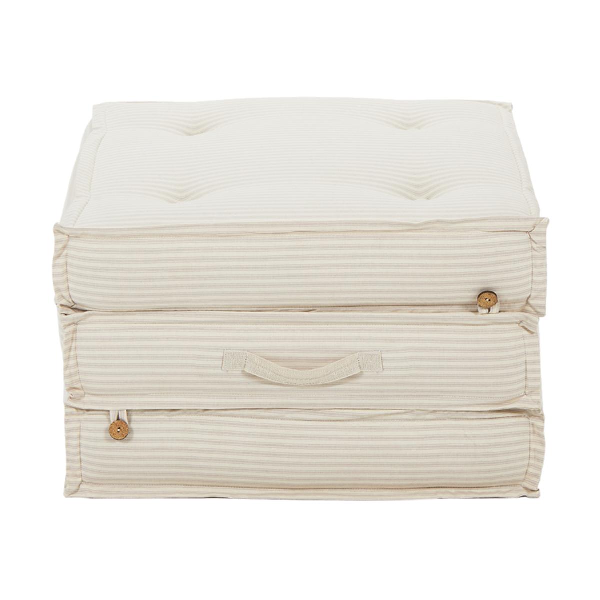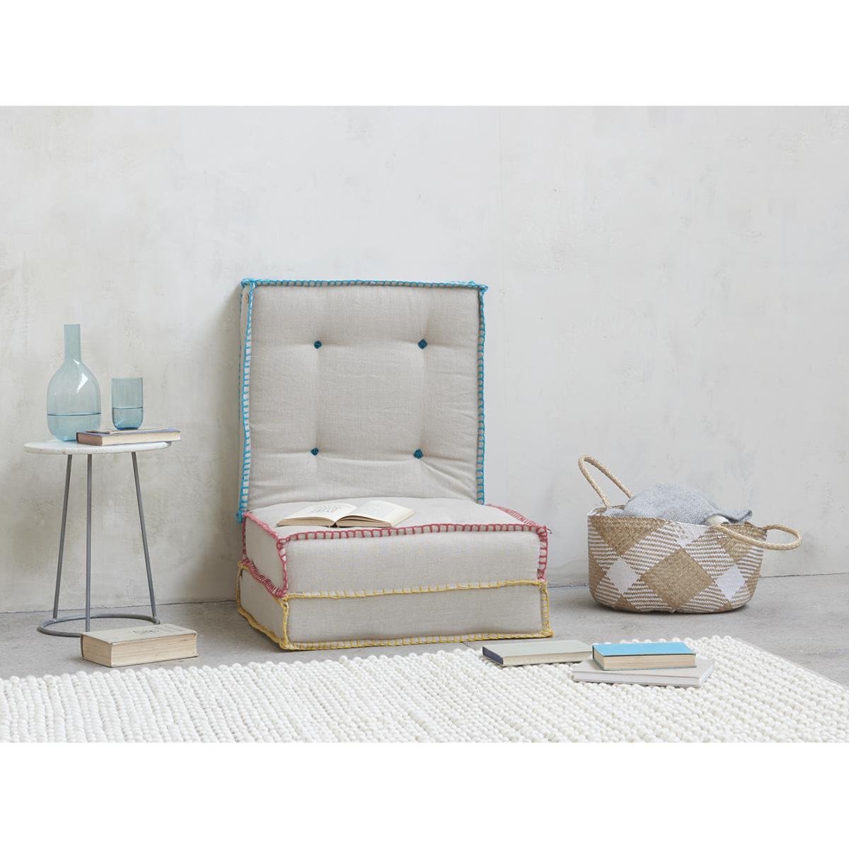 I love this floor cushion because it offers a versatile and practical seating option that fits seamlessly into both casual and contemporary interiors. It works particularly well in relaxed living spaces, kids' rooms, or even in cosy reading nooks where comfort is key. As a stylist, I would suggest stacking a few for a layered, textured look or placing it alongside a small pouf or low table for an inviting, laid-back vibe. Its neutral tone makes it adaptable to various colour schemes, and it can easily be paired with throws and cushions in bold or muted shades to add visual interest without overwhelming the space. This piece is excellent for creating informal seating areas that are both functional and stylish.