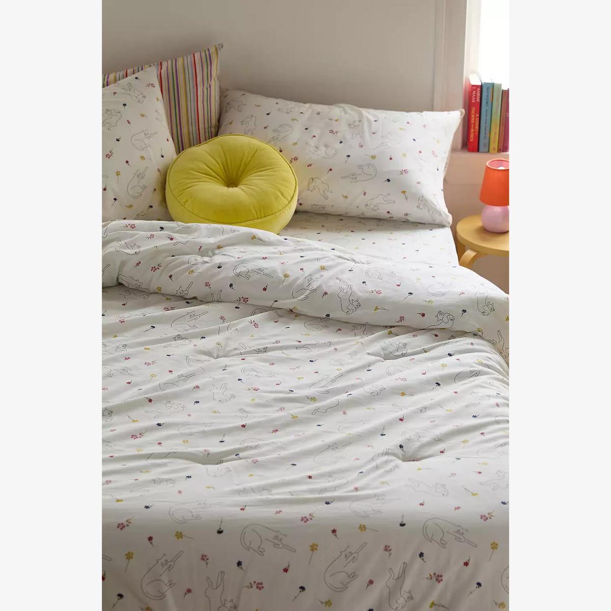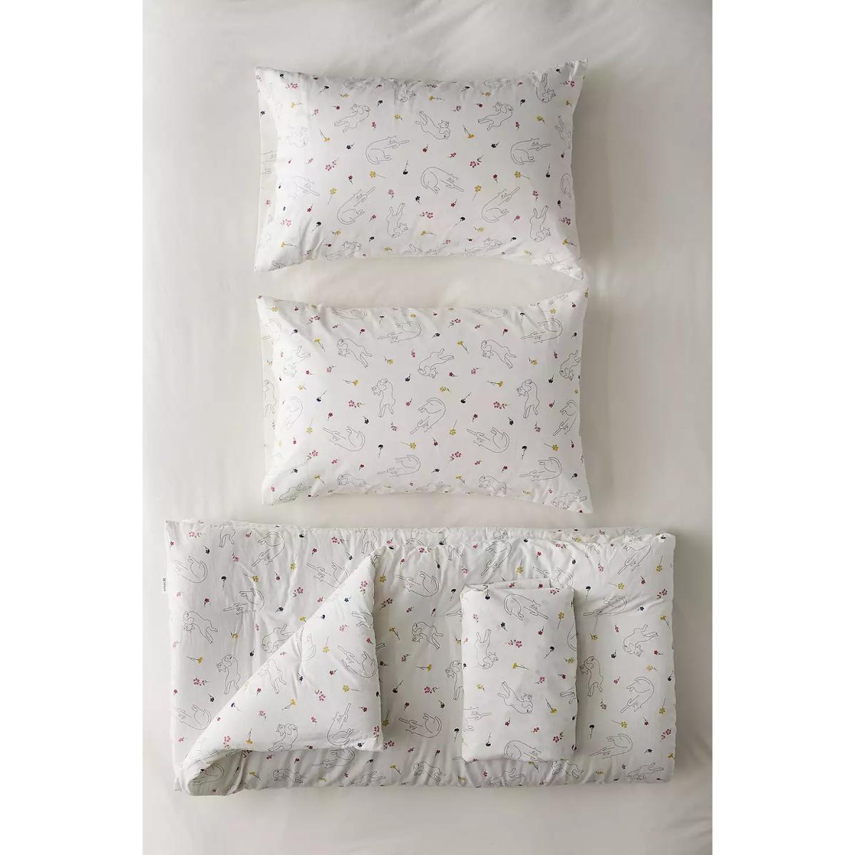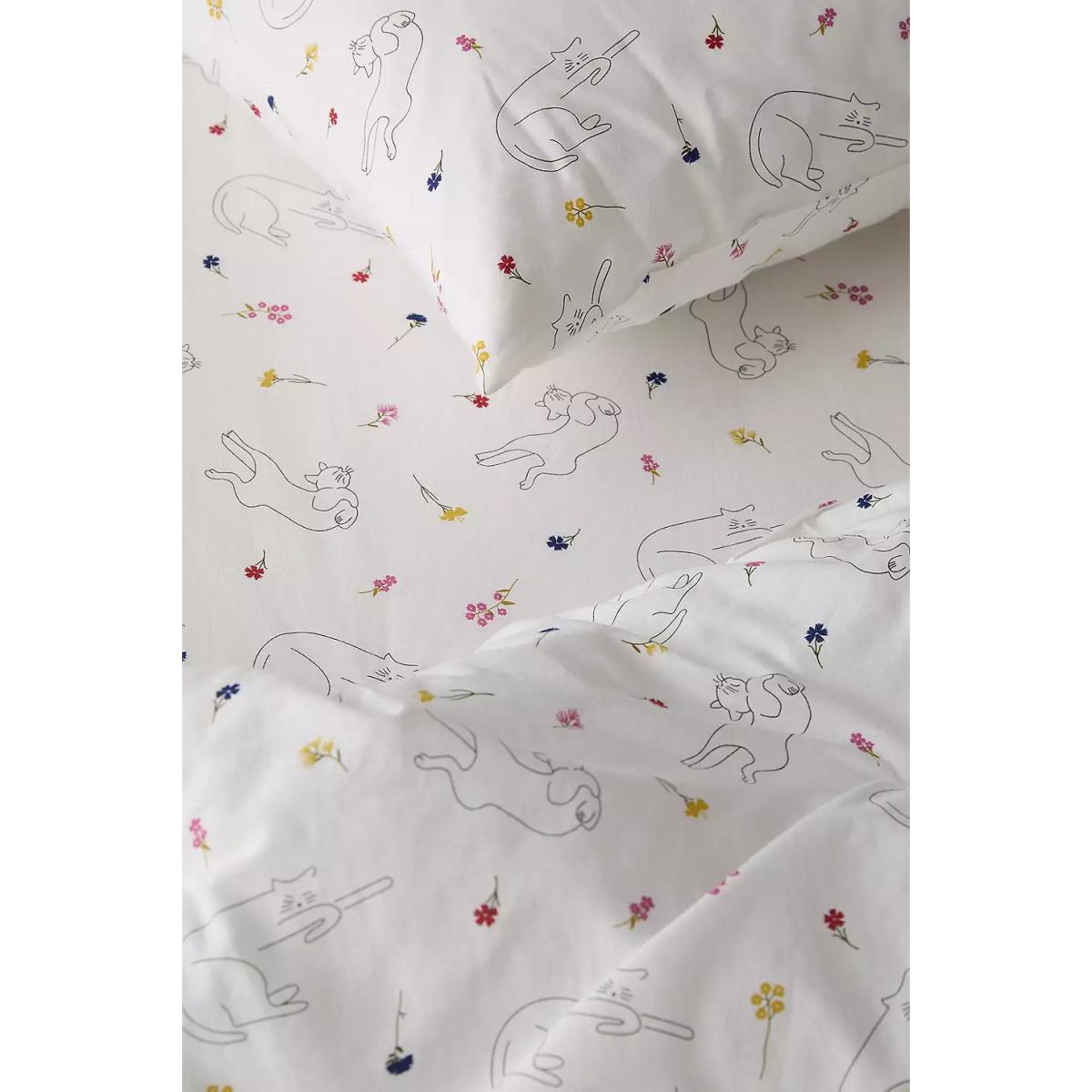Take a nap with your favourite cuddly pets with this sleepy cat duvet set. Includes a duvet cover and two matching pillowcases topped with embroidered florals and sleeping cat motifs. **About Better Cotton** \- By choosing our cotton products, you’re supporting our investment in Better Cotton’s mission \- This product is sourced via a system of mass balance and therefore may not contain Better Cotton \- Bettercotton.org/massbalance **Content + Care** \- 100% Cotton \- Machine wash **Size** \- Single (includes 1 pillowcase): 135cm (W) x 200cm (H) \- Double (includes 2 pillowcases): 200cm (W) x 200cm (H) \- King (includes 2 pillowcases): 230cm (W) x 220cm (H) \- Pillowcase: 75cm x 50cm