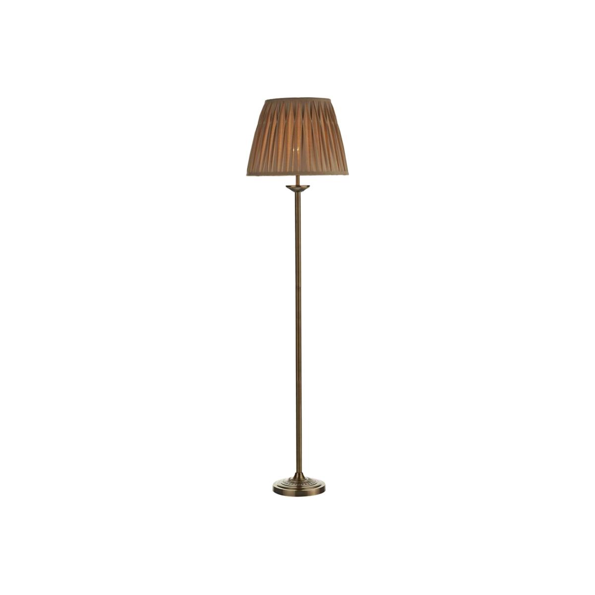 The Slim Antique Brass Floor Lamp brings a touch of timeless elegance to any space, showcasing a beautifully ribbed stem and a delicately crafted base in a rich antique brass finish. Topped with an exquisite grey-gold silk shade in a refined pinch pleat, this floor lamp combines classic design with understated luxury. Its tall, graceful profile makes it a perfect accent piece for living rooms, bedrooms, or reading nooks, adding warmth and sophistication to both traditional and contemporary settings.