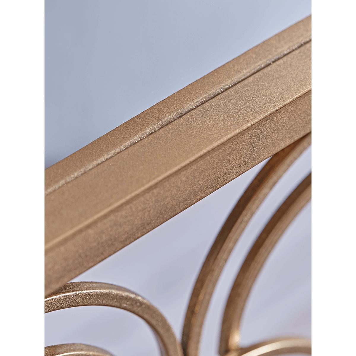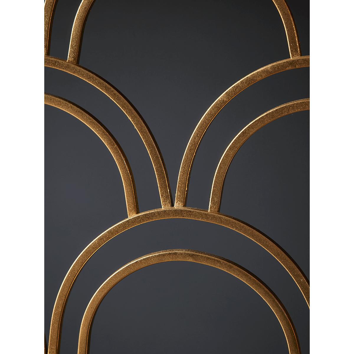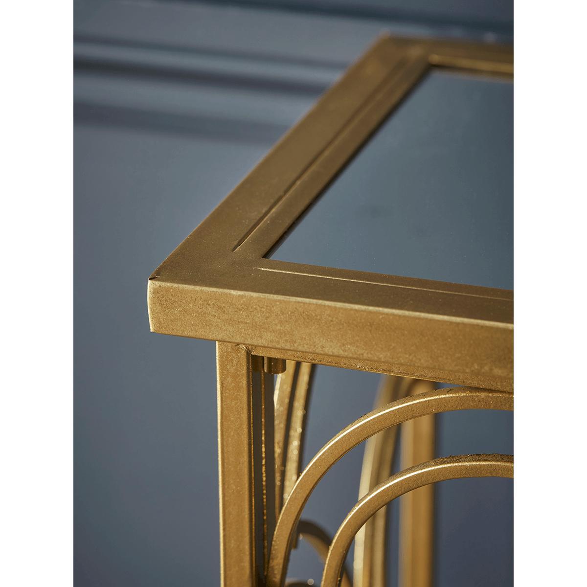 Our Slim Arch Console Table, crafted from iron with a gold finish, is perfect the piece for creating a focal point in your hall or dining room. Handsomely displaying Art Deco principles with a shaped metal decorative front panel, and a mirrored glass top, our console delivers on glamour, but with a refined sophistication.