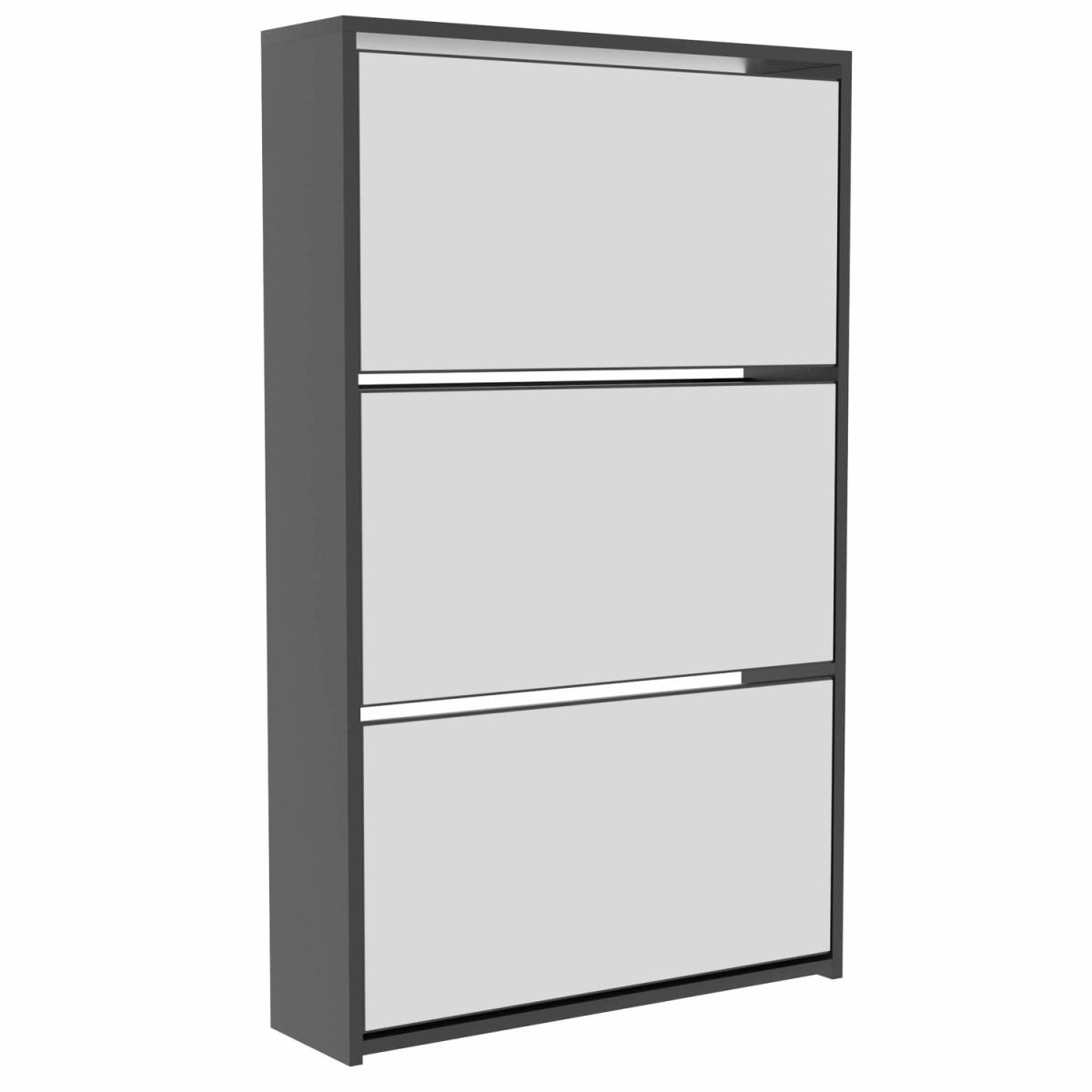 Modern stylish design Fits flat to the wall Mounts to the wall with brackets included 3 flip down door design - holding 3 pairs of footwear in each Narrow design makes it the perfect option to fit into smaller spaces Requires assembly with easy-to-follow instructions provided