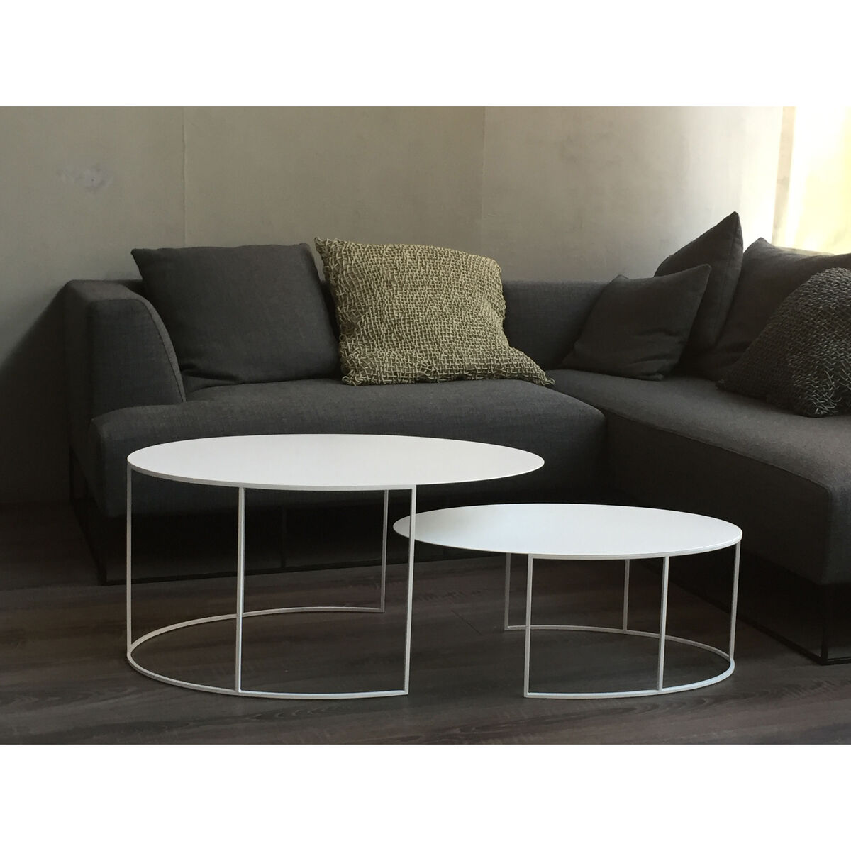 Due to its clean, timeless look, this steel coffee table fits in equally as well in modern interiors as it does in more traditional ones. The steel structure is very fine and ultra-ethereal. Slim Irony completely corresponds to the philosophy of the ZEUS brand: creating items which are simple, authentic, functional and economic. A quest for the essential achieved with total control over materials. Rather than just a large coffee table, the aim is to create an ultra-graphic composition in front of your sofa by gathering several small tables together. Very elegant, the oval coffee tables from the Slim Irony collection are available in two different sizes and heights (86 x 54 x H 42 cm and 72 x 42 x H 29 cm). The small table is designed to slide under the large one, like nesting tables. Zeus furniture is made by skilled craftsmen in Italy, near Modena. Each piece is made by hand: the metal is cut, assembled, welded and painted by hand. Each piece is unique. Steel is a recyclable material and any metal scrap not used during manufacturing is recycled for re-use. Zeus furniture is built to last: highly durable, this furniture can be handed down from generation to generation.