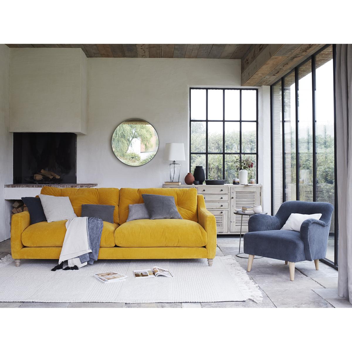 This slim-armed beauty is just the ticket for tight spaces. An uber-comfy sofa that you can sit in rather than on.