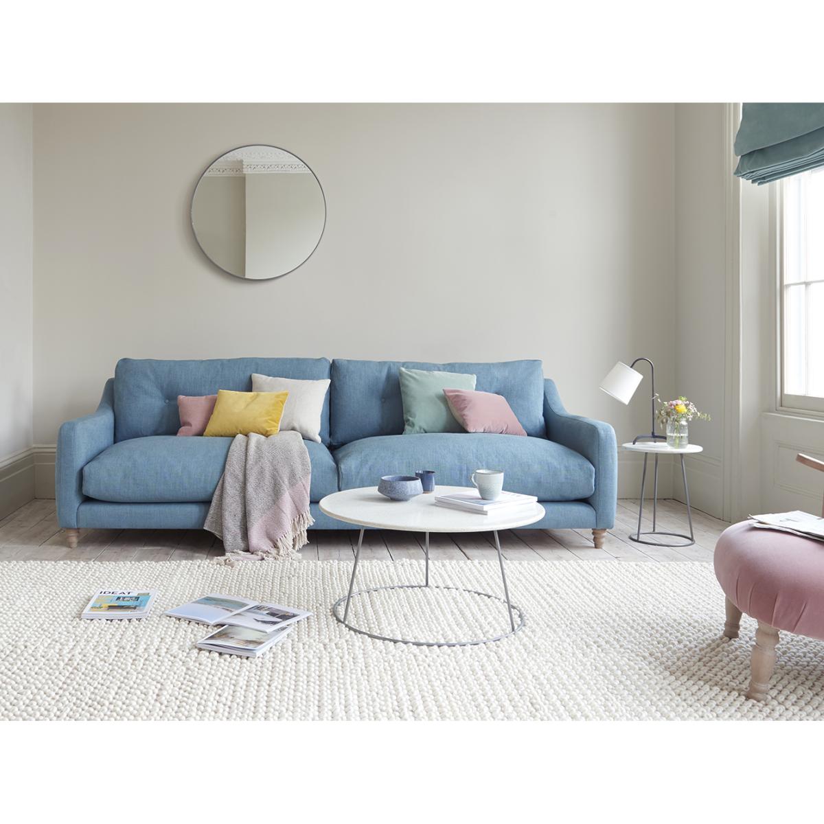 This slim-armed beauty is just the ticket for tight spaces. An uber-comfy sofa that you can sit in rather than on.