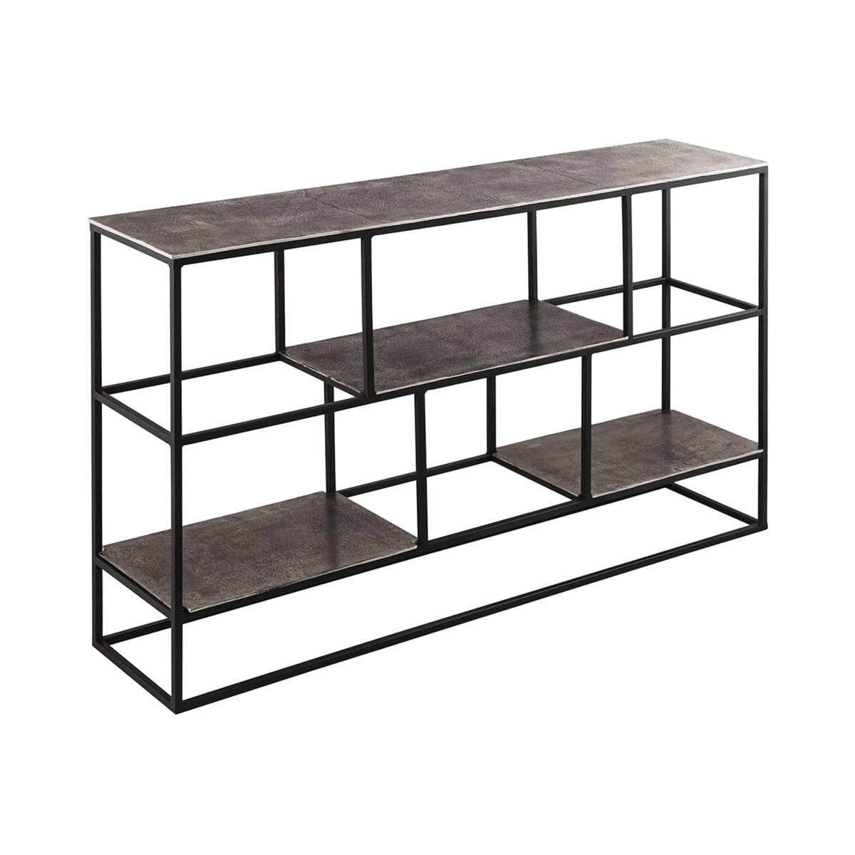 This Silver textured display unit features a textured surface which is hand cast in aluminium. The unit is hardwearing and will last the test of time. The contrasting black legs make it perfect for a modern contemporary interior.