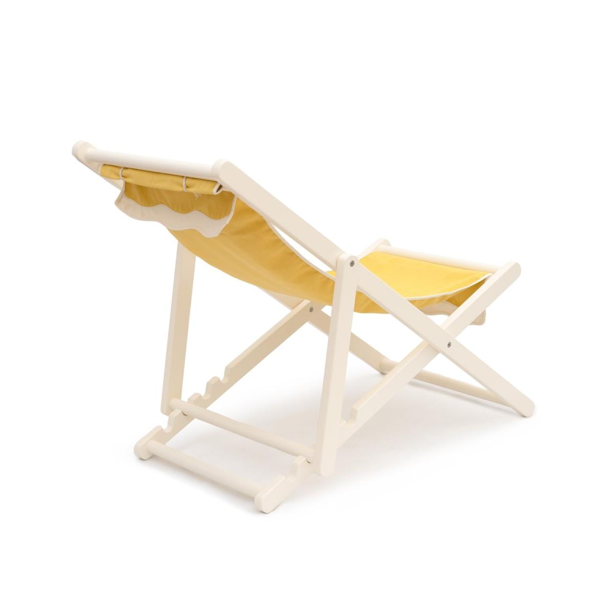 A chair restyled in Business & Pleasure Co's stunning fringe and scalloped valance. The Classic Sling chair has been made more beautiful than ever. Featuring their signature scalloped edge and lush natural cotton fringe. The sling chair adds comfort and class to any porch, beach or garden set up and still remains compact (when folded), so it's easy to set up and pack down. Ideally coupled with matching fringed umbrella